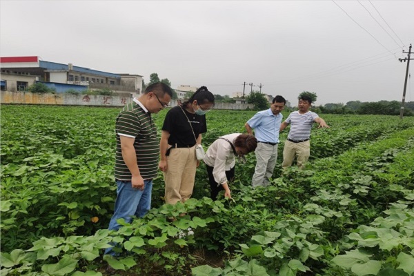 下午两位岗位专家及其他调研人员又一同前往黄敏百亩棉花示范基地进行调研,发现该基地棉花播种期较晚,生长势偏弱,两位岗位专家建议加强田间管理,促进棉花快速生长,以保证棉花产量。