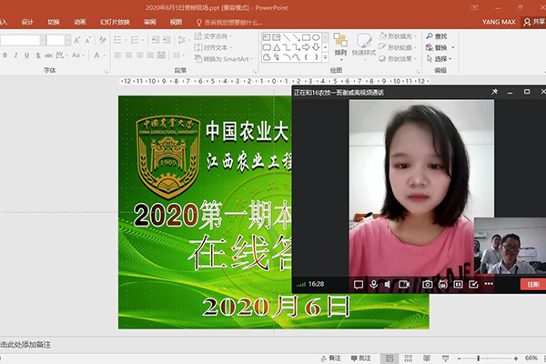 线上答辩严格按照中国农业大学网络教育学院“2020年第一期毕业论文答辩工作通知”要求,学员在答辩过程中使用QQ分屏的形式,用自制的PPT对毕业论文的目的、意义,论文的基本框架、主要内容、主要成果、创新、结论以及对自己完成任务的评价等进行了详细讲解。