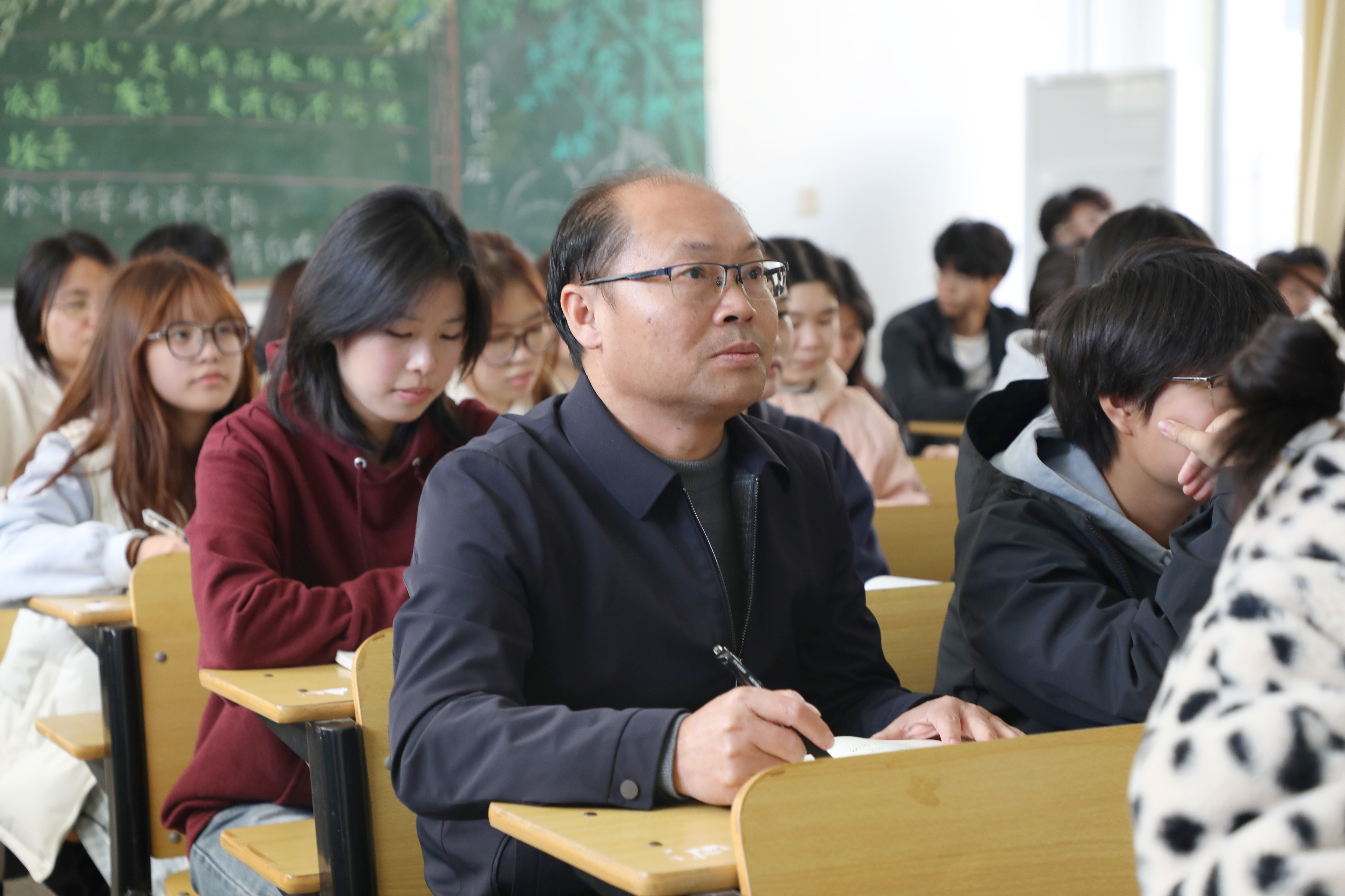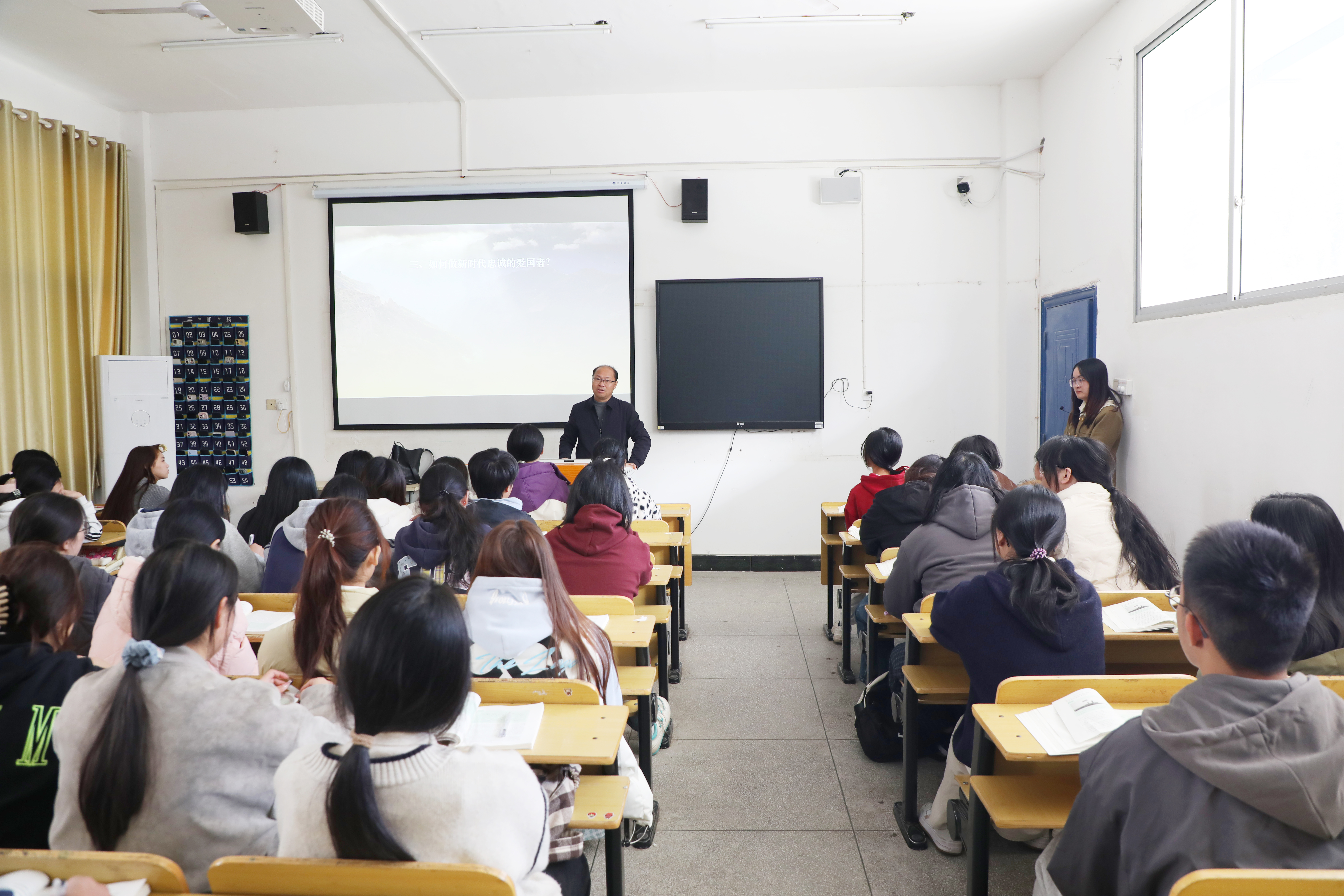 吕湘江深入课堂、走进教室,和同学们一同聆听了史利琴老师的思政课《如何弘扬爱国主义民族精神》。课后,吕湘江与师生进行交流,对授课教师的教学态度、课堂氛围和教学效果给予了充分肯定,勉励大学生爱祖国的大好河山、爱自己的骨肉同胞、爱祖国的灿烂文化、爱自己的国家,鼓励他们认真学习、勤于思考、积极锻炼,努力将思政课堂上的理论知识内化于心、外化于行。