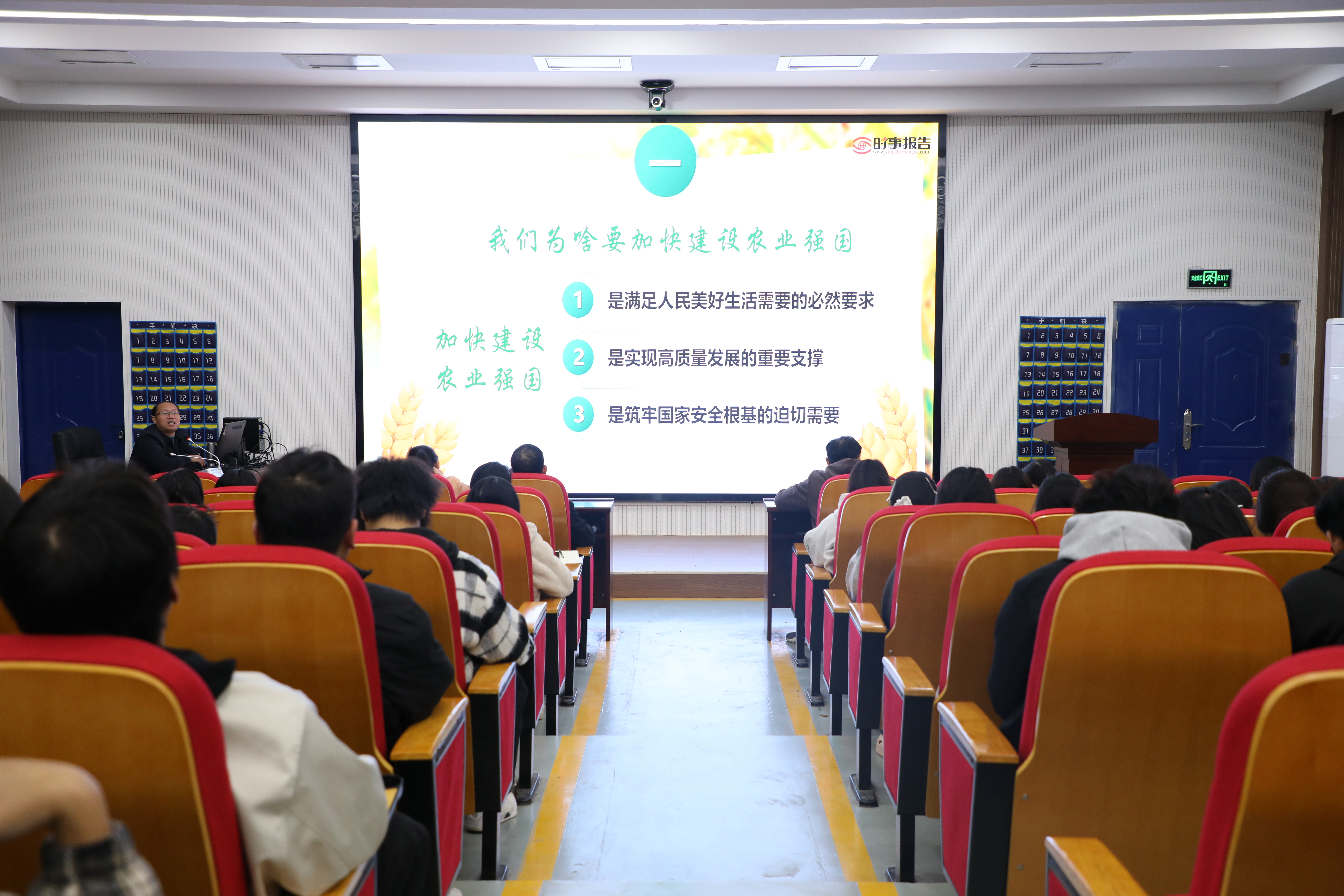 下午,吕湘江以《阔步迈向农业强国》为题,为党员、班主任(辅导员)、入党积极分子上了一堂思政课。他从为什么要加快建设农业强国?建设什么样的农业强国?怎样加快建设农业强国三个方面入手,在学院师生心里种下了一颗“懂农业、爱农村、爱农民”服务乡村振兴的种子,并勉励同学们坚定不移听党话、跟党走,做有理想、敢担当、能吃苦、肯奋斗的新时代好青年。