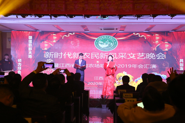 1月10日晚,以“新时代、新农民、新风采”为主题的江西省家庭农场联合会文艺汇演在学院多功能厅隆重举行。省科技厅原副厅长、二级研究员王晓鸿同志;省食品安全委员会副主任委员、省政协农业农村委员会专家组副组长唐安来;中央农广校、广播电视教育中心主编李海霞;省农业农村厅老干处处长赵梅;省农业农村厅农垦局农业处处长曹平贵等各级领导;广东、安徽、河南省家庭农场联合会负责人;学院在家的院领导与江西省家庭农场联合会负责人共200余人一起观看了汇演。汇演由联合会吉水分会会长冯小庆和学院陈敏同学共同主持。