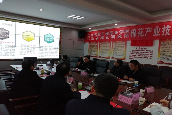 最后,谭书记指出从棉花产业来讲,江西省棉花研究所作为江西省棉花产业的主持单位,希望今后能多来学院给予相关指导;其次,学院属于农业职业院校,应当为我国农业事业服务,同时也将有利于学院发展,学院党委会严格按照通知要求继续大力支持该产业体系的研究工作;最后谭书记对该团队成员教师提出殷切期望,希望该产业体系栽培岗位团队成员要认真搞研究,一定要实事求是,做出成效,为江西省棉花产业发展做出应有的贡献!