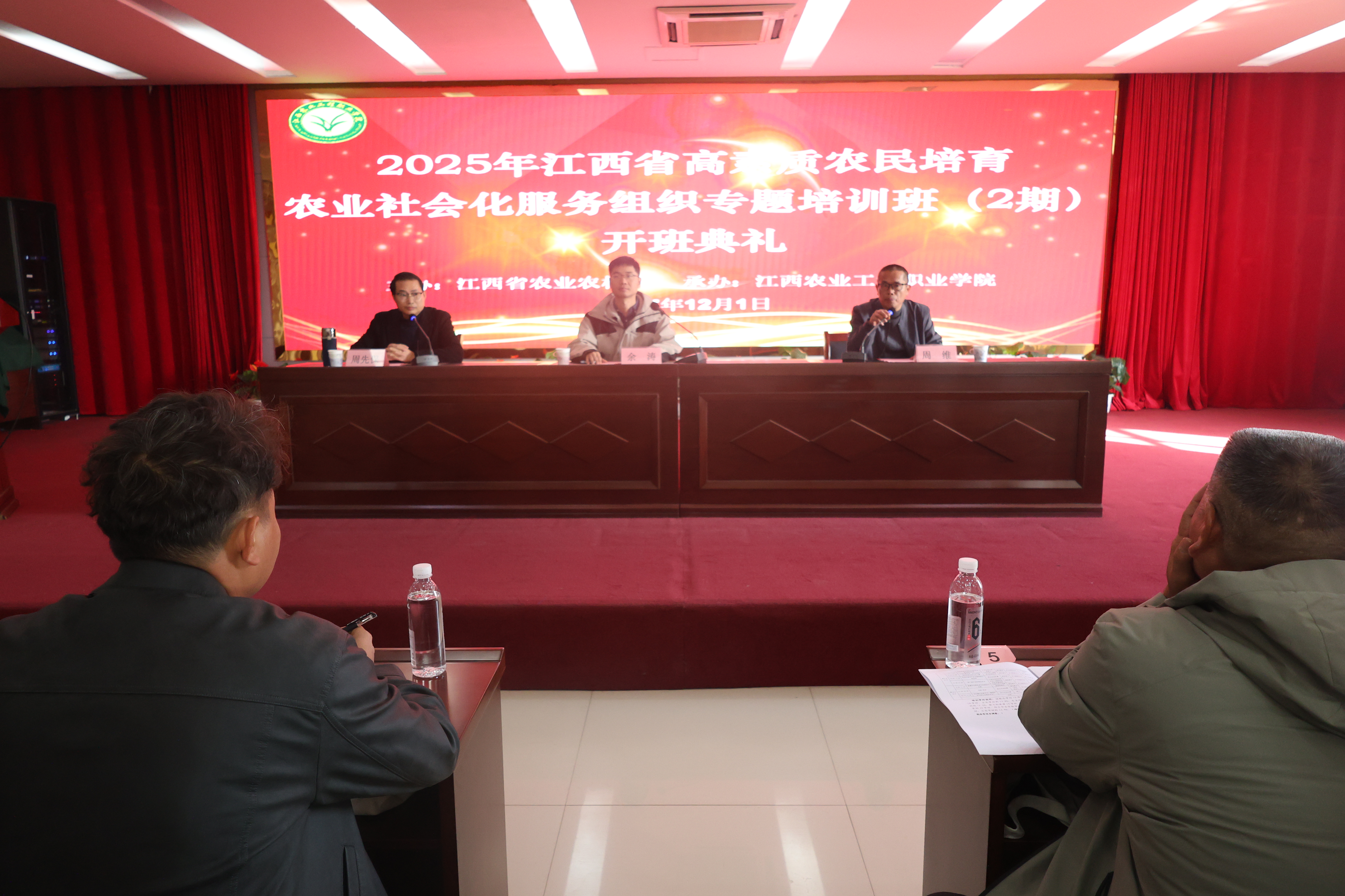 12月1日上午,学院在多功能报告厅举行2025年江西省高素质农民培育暨社会化服务组织专题班(2期)开班典礼。江西省农技推广中心农机处余涛到会指导工作,学院党委委员、副院长周维出席仪式并致开幕词,培训部负责人主持开班仪式,来自鹰潭、赣州两地的50名学员参加仪式。