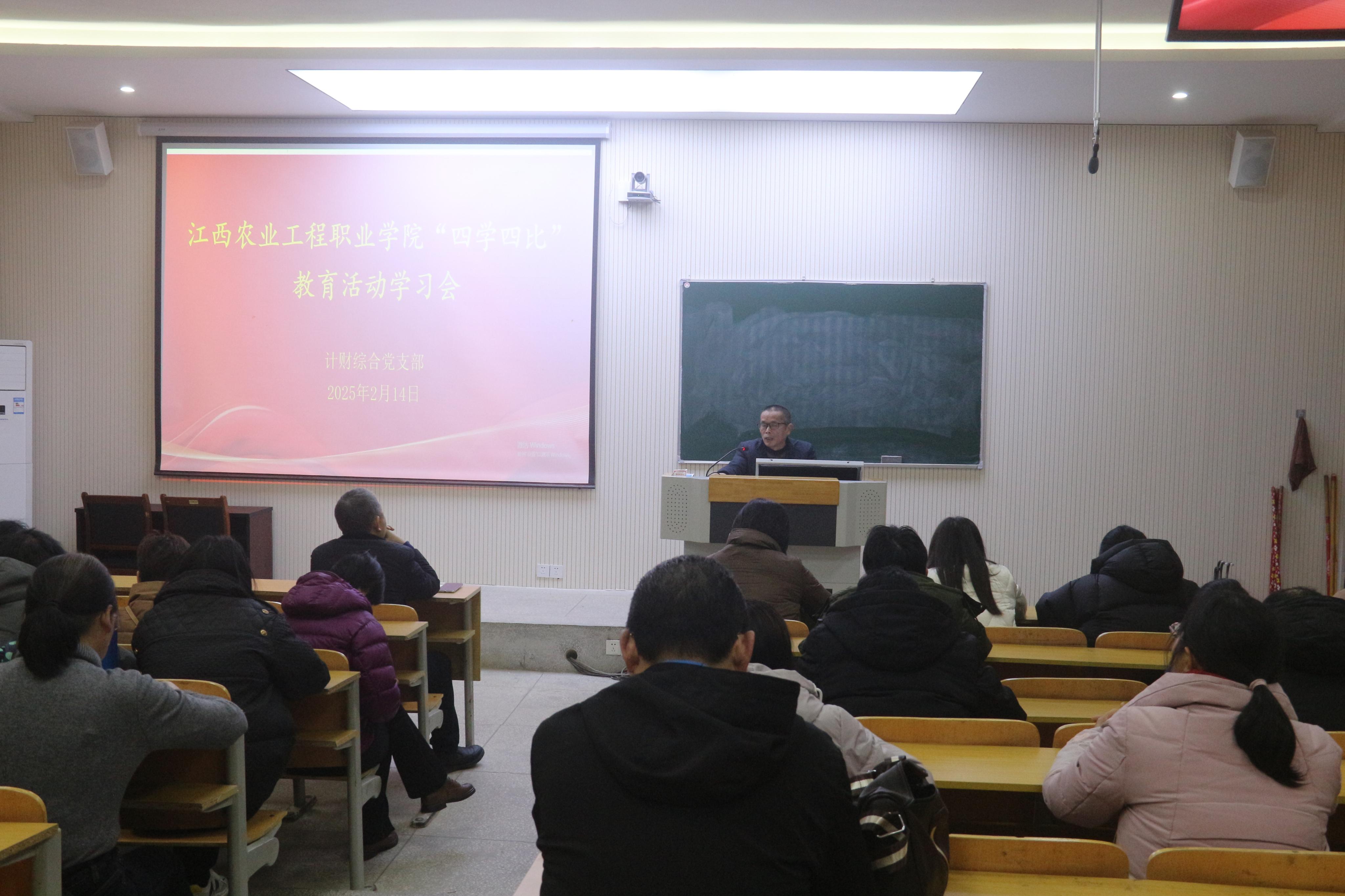 依据《江西农业工程职业学院开展 2025 年春季学期“四学四比”教育活动实施方案》的安排,学院计财综合党支部于 2 月 14 日下午在培训教室一举行“四学四比”集中学习会。计划财务处、工会、培训部、实训中心等支部所属部门的全体教职工参加会议,学院副院长周维到场督导。