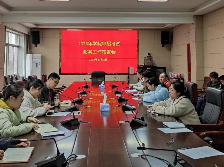 3月15日上午,学院在惟公楼409会议室召开2024年单招考试服务工作布置会。学院副院长陈金和、各分院支部书记及各县市区负责人及参加了会议。