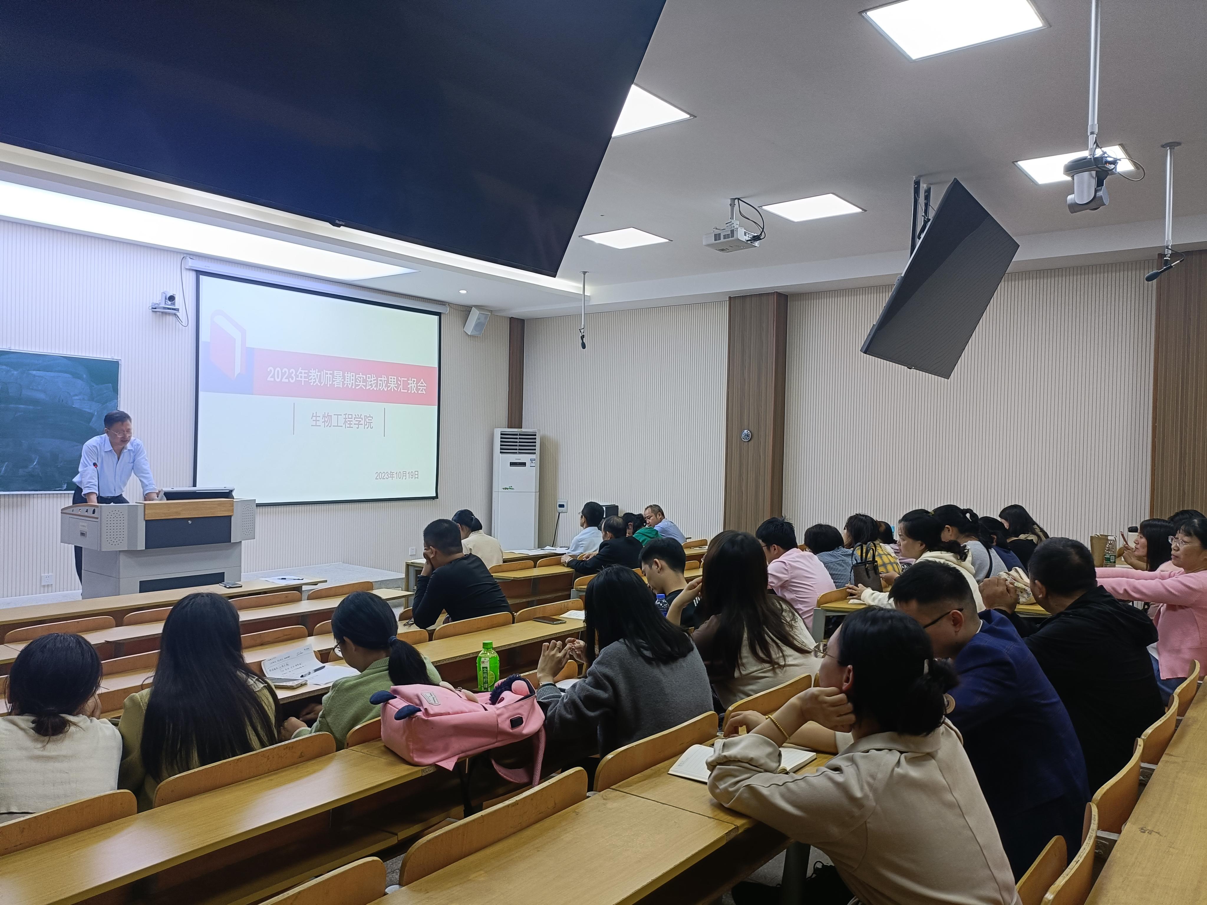 10月19日晚,生物工程学院在培训教室举办了2023年教师暑期实践锻炼成果汇报会,生物工程学院全体教师参加会议。