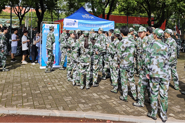 9月16日上午,学院超市联合江西润田实业股份有限公司在学院运动场开展2023润田翠军训公益送水活动,为学院新生送去军训的第一份清凉。