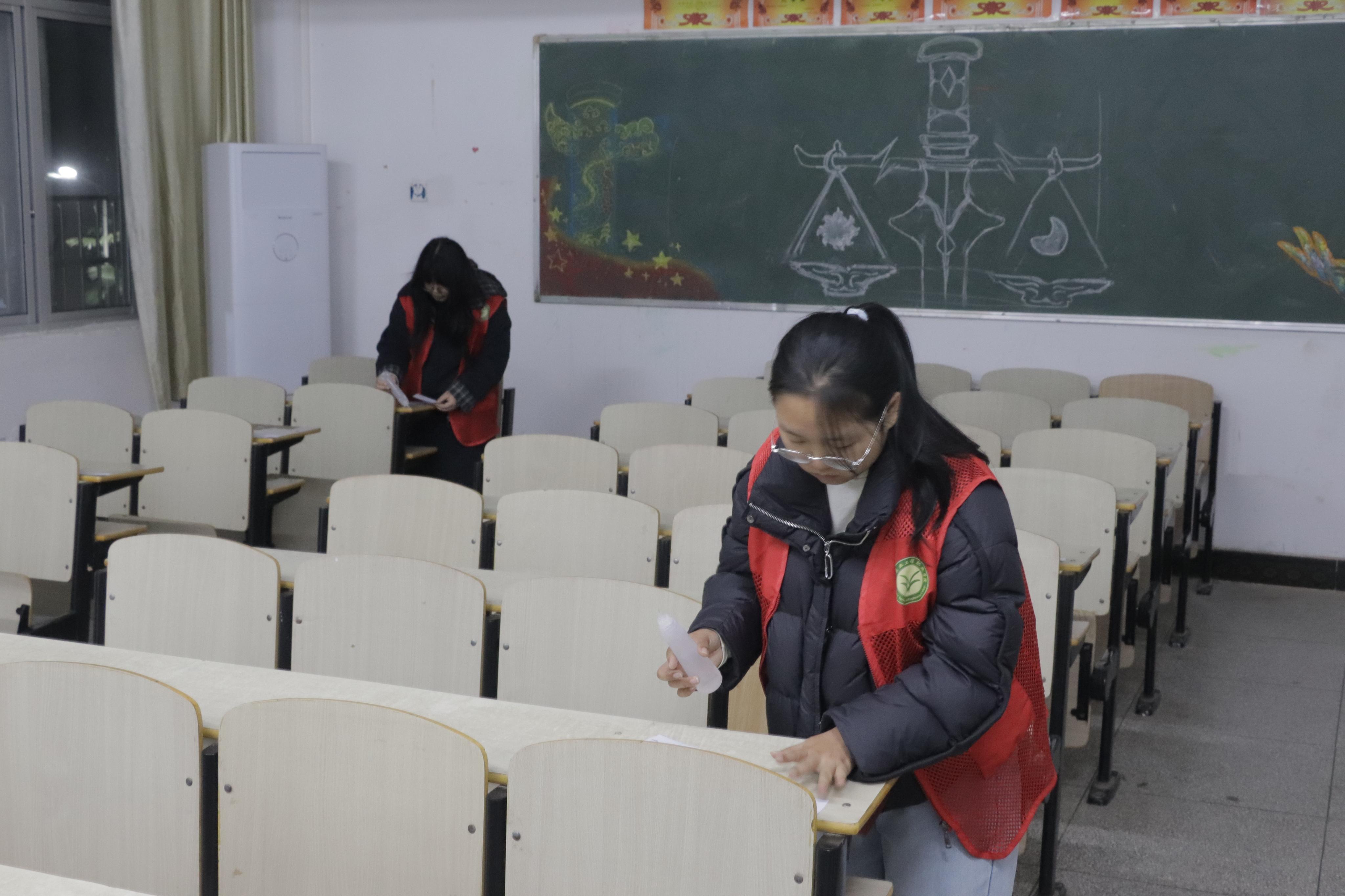 •        为营造安心、温馨的考试环境,学院团委组织青年志愿者于12月12日至13日开展“护航四六级,志愿显担当”专项志愿服务活动。志愿者们助力考生引导、秩序维护与应急协助等方面,全心全力为考试保驾护航。