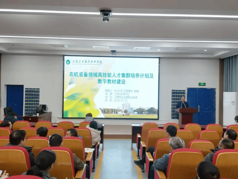 为深化农机装备领域人才培养模式改革,推动数字教材建设,12月15日,农机装备领域高技能人才集群培养及数字教材开发专题讲座在学院学术报告厅举办。学院全体专兼职教师到场聆听学习,学习氛围浓厚。