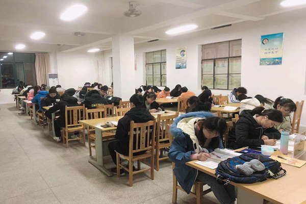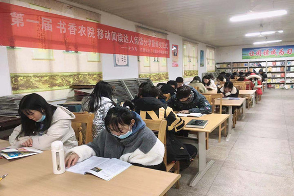 与此同时,学生的阅读热情持续高涨。为了适应同学们的阅览需求,图书馆举全馆之力,加大开放管理力度,全部开放三楼所有阅览室(中心)和职工书屋。12月15日晚,迎来了阅览室开放高潮。值班馆员一来到图书馆,只见同学们早已聚集在门口,人头攒动。他们有序地排队而入,入馆登记的学生长队甚至已到三楼楼梯口转弯处。进入阅览室后,按照现阶段学院疫情防控要求,每位同学之间保持一定距离,相对而坐,认真地看书学习,复习迎考。