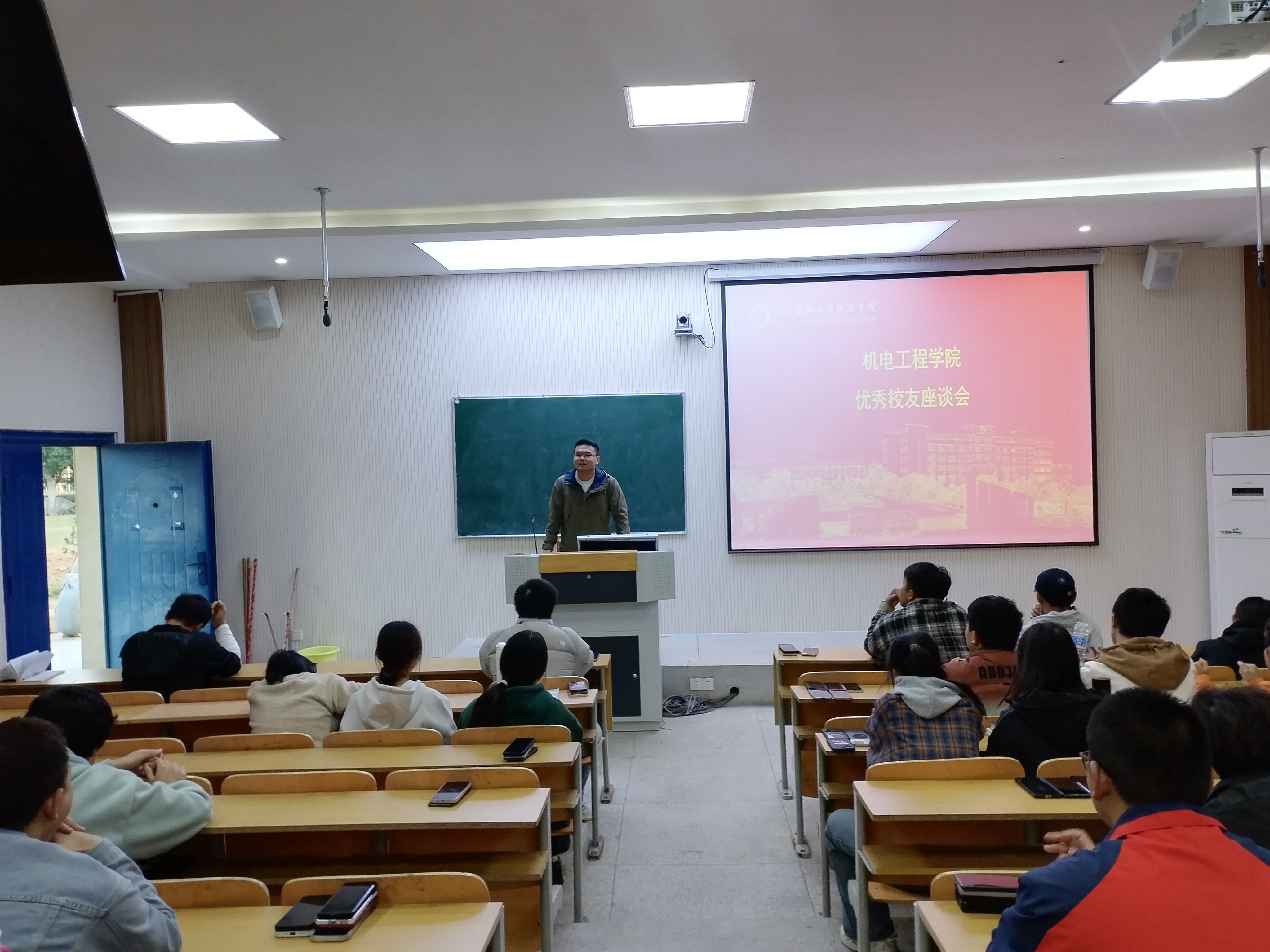 12月2日下午,为明晰分院学生的职业认知,鼓励同学们做好职业规划,提升同学们的学习兴趣,机电工程学院在培训教室二开展优秀校友座谈会。