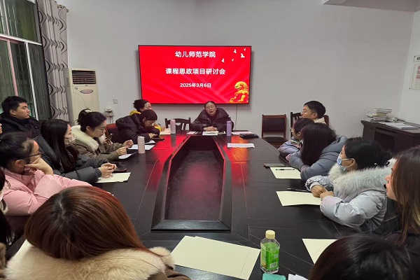 为充分发挥课程思政育人作用,落实立德树人根本任务,将思想政治教育贯穿人才培养体系,3月6日,幼儿师范学院全体教师在中医养生馆201会议室召开课程思政项目研讨会。