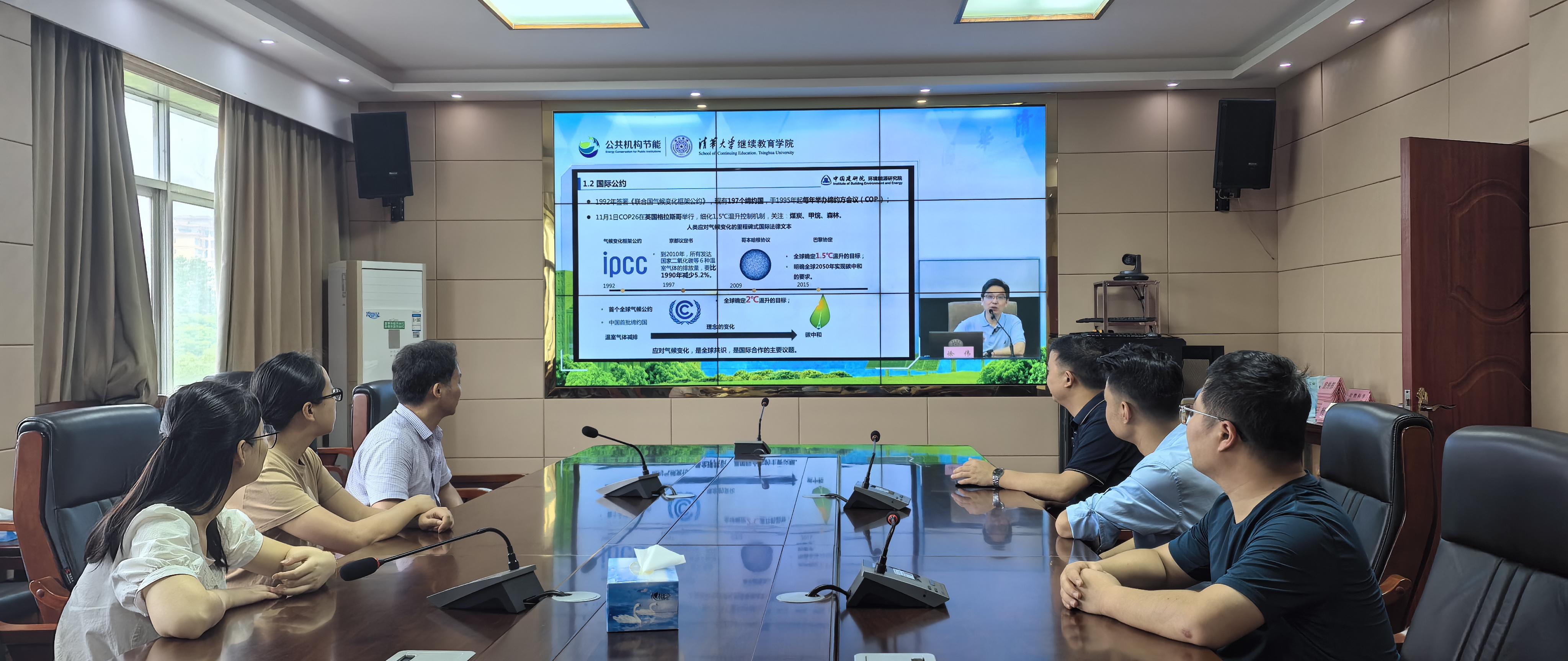 为了深入学习贯彻习近平生态文明思想,认真落实中央关于碳达峰碳中和的决策部署,持续提升公共各机构干部职工推动绿色发展能力,6月28日上午,后勤保障处组织部门职工收看2024年第二期公共机构绿色低碳讲堂,课上,全国工程勘察设计大师、中国建研院首席科学家、建筑环境与能源研究院徐伟院长,以“建筑节能降碳技术与应用”为主题进行授课。