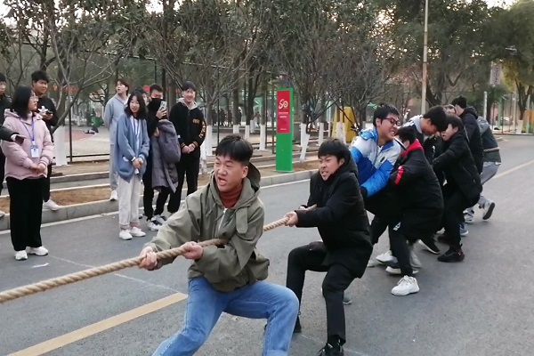 为迎接2021年元旦的到来,丰富学生的课余生活,提高各班同学的团结合作能力和凝聚力,12月24日下午,经济管理学院开展男子组拔河比赛。