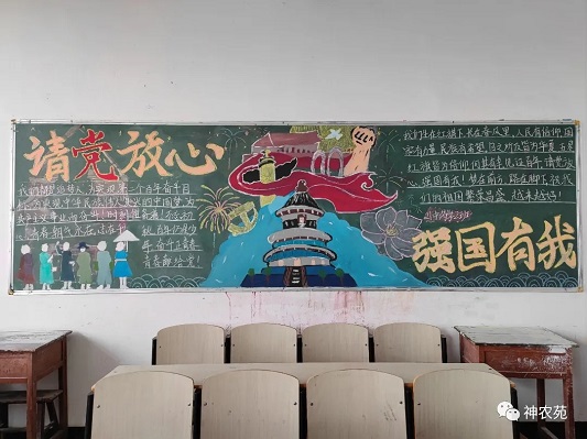 活动以班级为单位,同学们尽情施展创意才能,用心描绘板报,通过独具匠心的图案,描述对祖国的热爱。那工整的文字、精美的图画,颂扬了中国共产党的丰功伟绩,也激发了报效祖国的宏伟志向,表达了自己对建党一百年最诚挚的祝福。评比过程中,每位评比成员秉承着公平公正的态度,对黑板报的内容主题、报头、整体设计、文字书写做了系统评分。最后,依据最终分数评出一等奖两名,二等奖四名,三等奖6名,优胜奖若干。