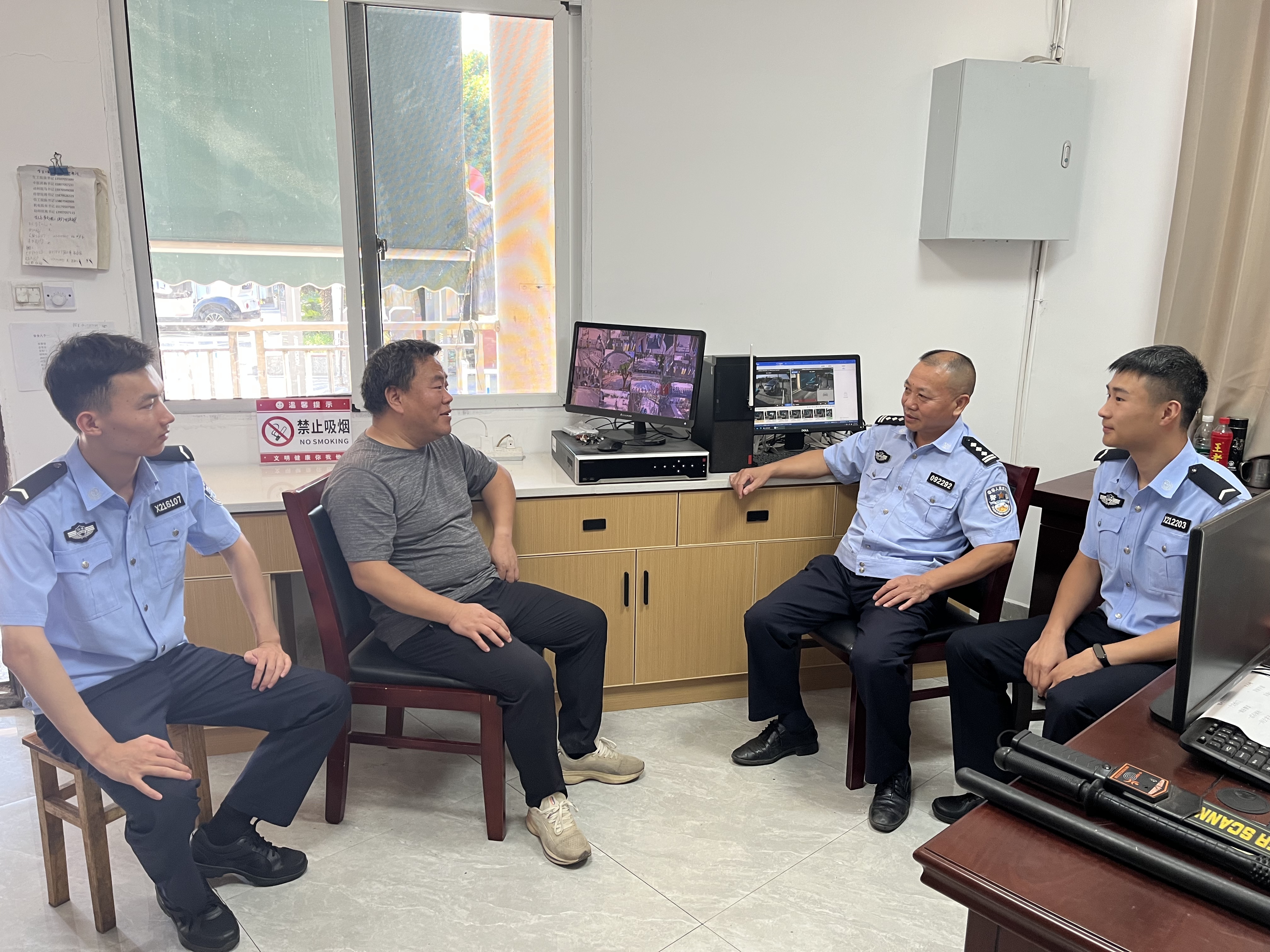 指导组一行首先实地查看了校园周边交通环境、门卫值守岗、安防监控中心、消防设施设备等区域和场所。民警同志认真检查了安保器材配备使用情况、出入人员登记管理台账、视频监控系统运行状况以及消防器材的有效期和保养记录,并就关键环节的操作规范对安保人员进行了现场询问和指导。