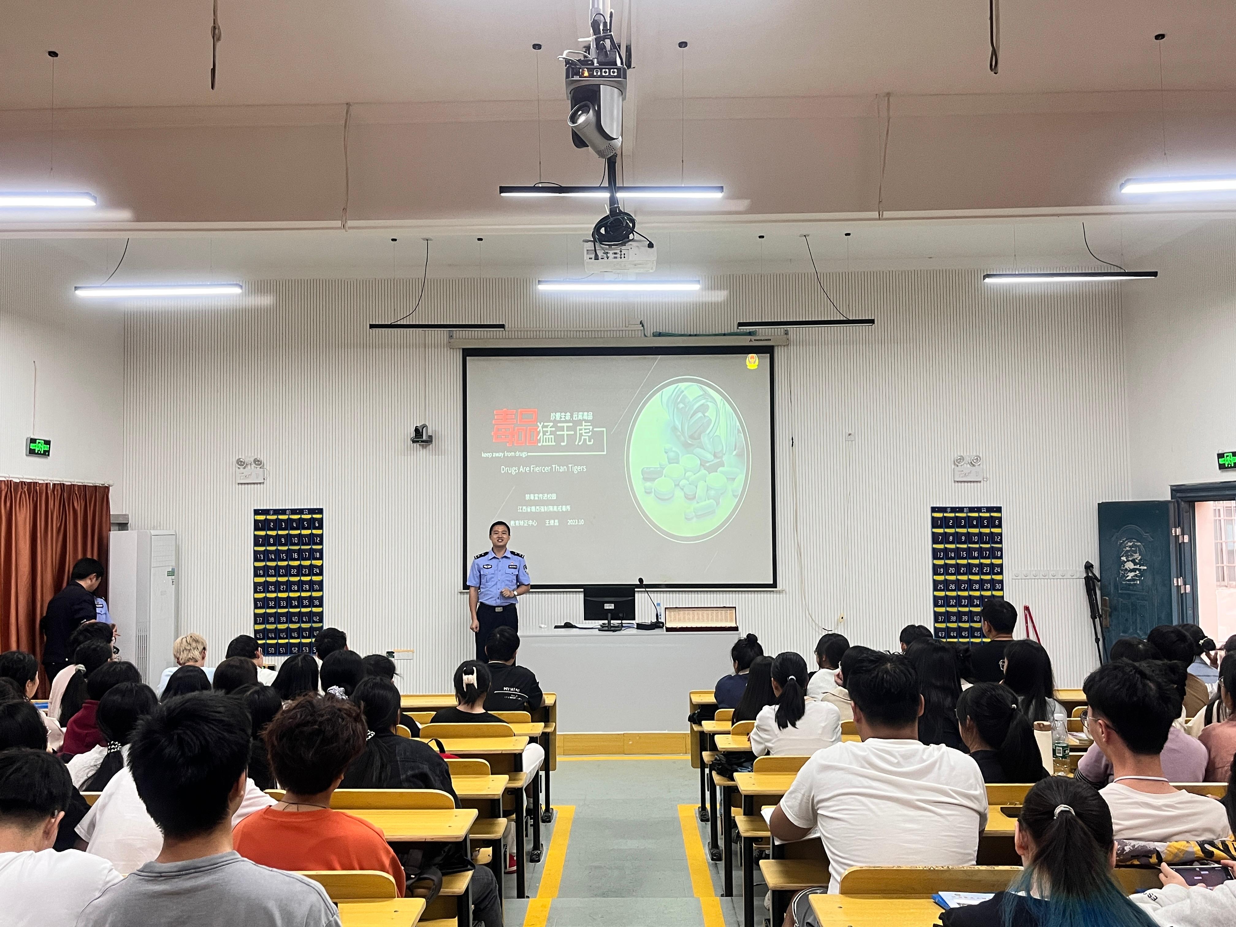 为切实加强校园禁毒宣传工作,提高广大师生识毒、防毒、拒毒意识,筑牢校园“防毒墙”。10月19日,学院联合樟树市公安局禁毒大队、江西省赣西强制隔离戒毒所开展禁毒宣传进校园教育活动。