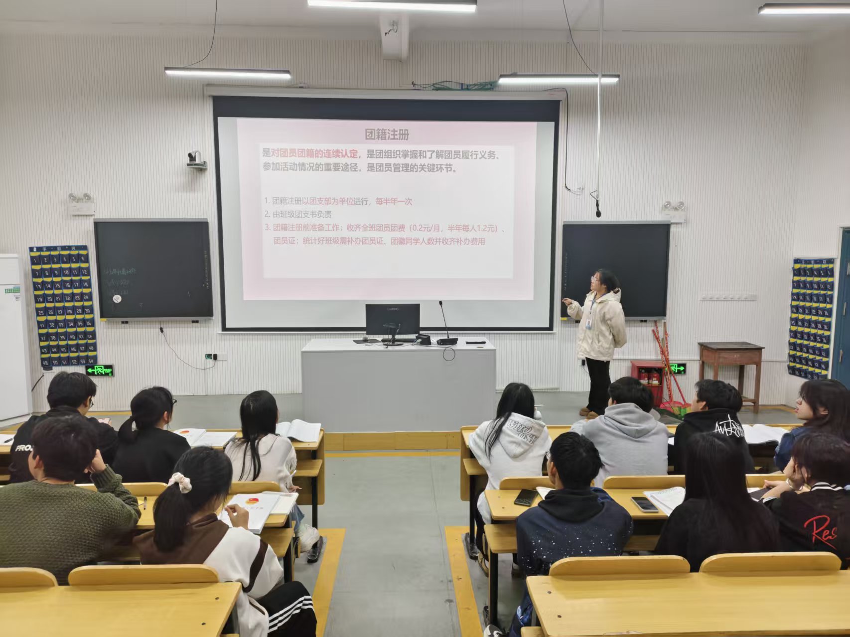 本次培训内容紧扣团支书工作实际,涵盖三会两制一课、智慧团建系统操作、《团支部工作手册》填写、团籍注册、“两优一先”评选、新团员发展及推优入党等七大模块。培训会上,工作人员结合PPT演示,详细解读了主题团日活动组织流程,重点演示了智慧团建系统中团员管理、教育实践录入等操作步骤,对《团支部工作手册》的填写规范、团籍注册流程等基础工作进行了逐项指导。