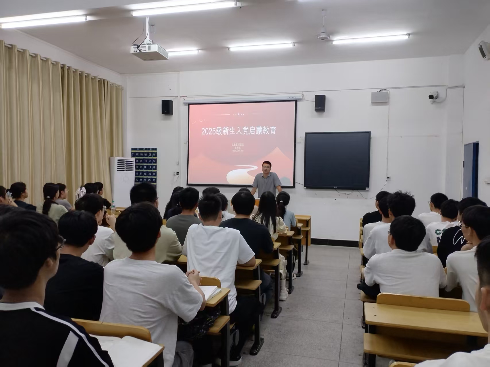 为了帮助2025级新生深入了解党的基本知识,端正入党动机,机电工程学院党支部组织全体教师党员于9月22日至24日深入各班级开展入党宣讲活动,通过理论讲解、案例分享、互动答疑等形式,系统普及党的知识,引导新生积极向党组织靠拢。