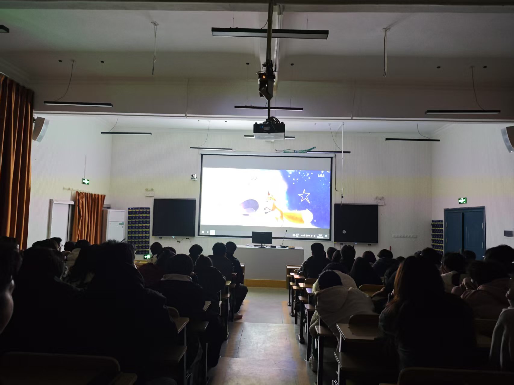 活动当晚,教室座无虚席,同学们满怀期待地等待影片开场。本次活动放映的影片为《荒野机器人》,这部影片以其独特的视角和精彩的叙事,将同学们带入了一个充满挑战与成长的世界。影片中的机器人在荒野中经历了无数艰难险阻,却始终没有放弃对生存意义和自我价值的追寻。在观影过程中,同学们全神贯注,被影片情节深深吸引,随着机器人的命运起伏而或紧张、或感动。