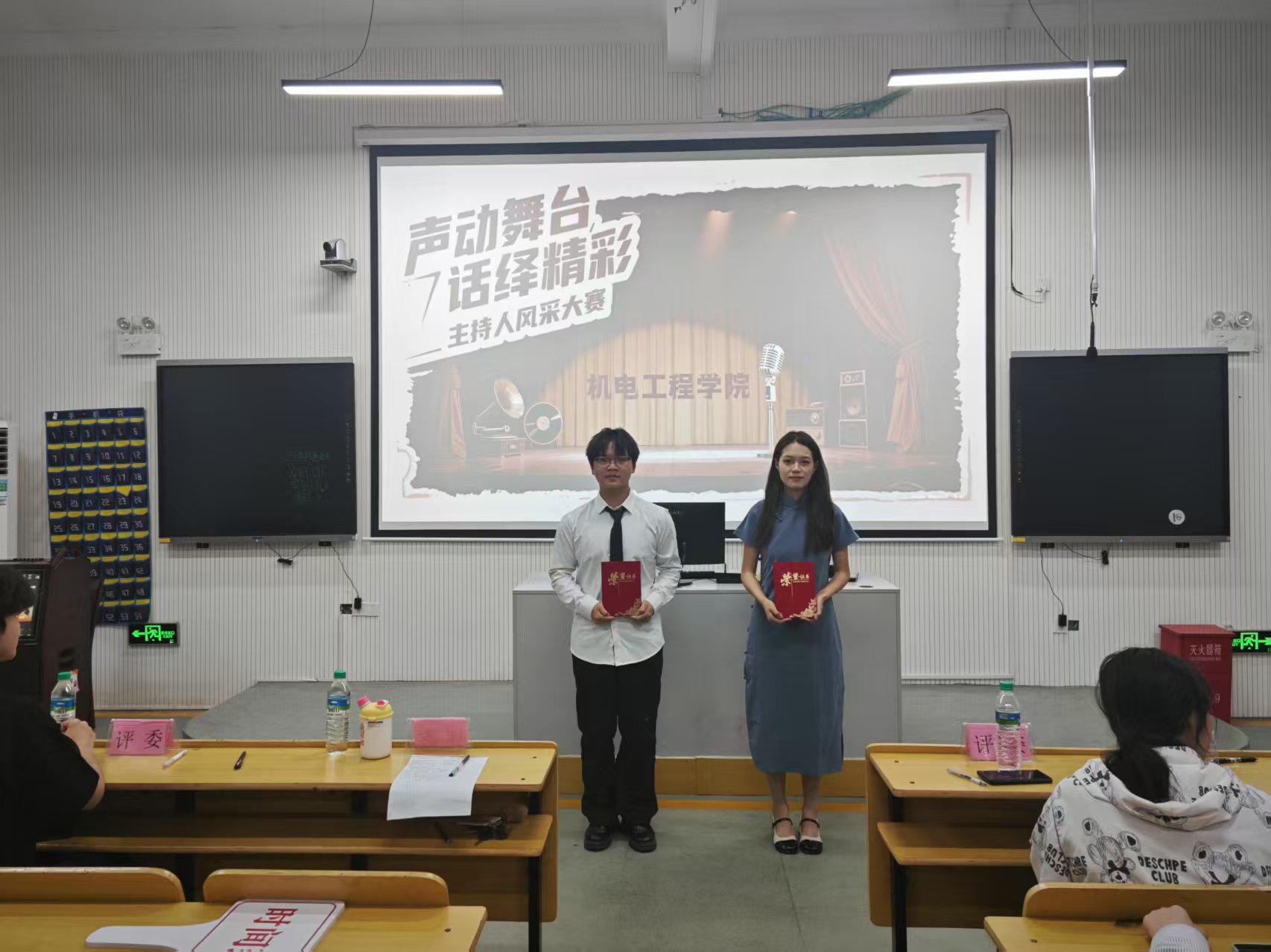 为展现当代大学生语言表达与临场应变能力,发掘主持人才,5月26日晚,机电工程学院在第二多媒体教室举行主持人风采大赛。经过层层选拔,8名选手同台竞技,通过“自我介绍”、“才艺展示”、“模拟主持”三大环节展开激烈角逐,为观众呈现了一场兼具专业性与观赏性的艺术盛宴。