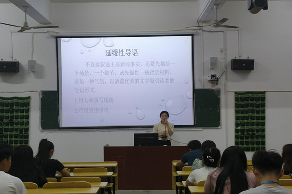 此次培训邀请了基础部钟清珍老师进行讲授,钟老师从新闻报道的标题、导语、主体、结尾等几个方面的内容出发,用通俗易懂的语言向各位同学讲解了新闻报道写作的关键要点和注意事项。讲解的同时还列举了一些生动形象的例子帮助同学们理解,并且针对可能会出现的一些具体问题给予了解答。培训结束后,在座的同学们纷纷表示学习到了很多知识,获益匪浅。