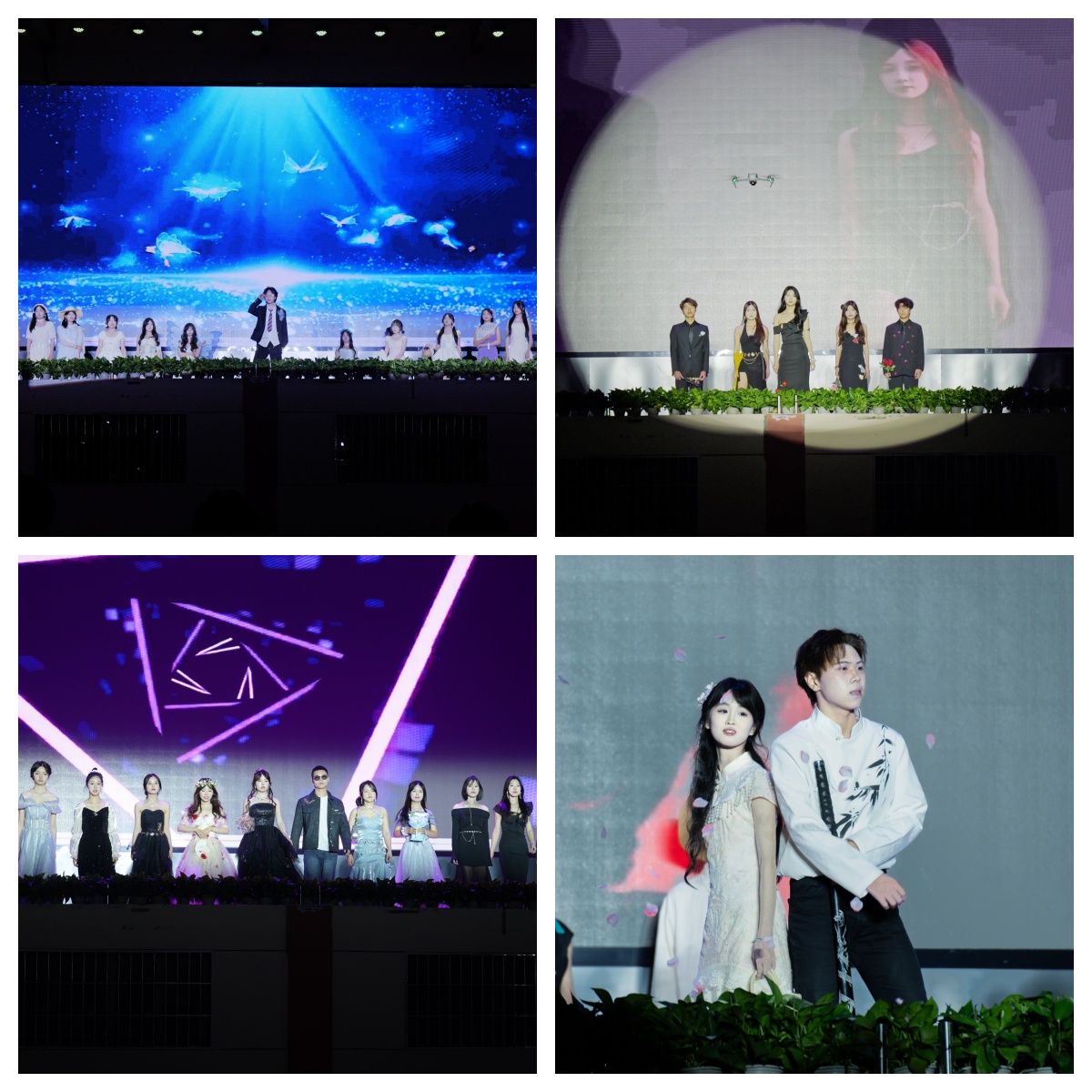 终场时刻,经济管理学院学生会同学以《在你的身边》大合唱谢幕,歌声中,无人机编队于夜空勾勒出麦浪波纹的画面,为整场活动画下诗意句点。