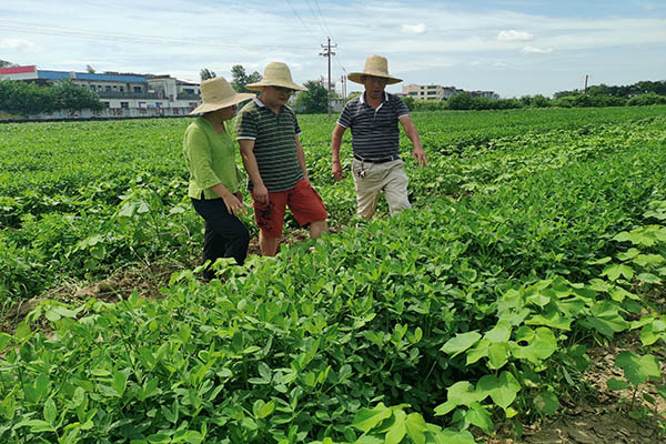 7月17日,省棉花轻简化栽培岗位专家孙桂琴带领团队和赣中试验站站长一同到高安市原种场和高安市黄敏家庭农场示范基地进行棉花中期生长情况调研和现场技术指导,由于近期时间雨水偏少,部分棉花有些长势过旺并需要化控,棉花下部叶片有点变黄要适当灌溉缓解当前旱情,省棉花轻简化栽培岗位专家孙桂琴亲自到示范基地带来缩节胺农药并指导种植大户如何化控,,化控采用二次稀释法,目前棉花长势还好,有少量的烟粉虱和棉叶蝉,棉花化控同时并结合防治病虫害加强田间管理等方面进行防控。目前棉花化控技术是棉花种植过程种植很关键的一个环节,第一是提高棉花产量的重要措施。第二能提高抗旱性、提高耐涝性、提高抗早衰能力、提高产量、提高品质、减少蕾铃脱落、减少虫害发生、减少烂铃。第三化控要遵循一早二少三勤的原则。下一步要扩大示范基地种植规模,适应现代作物的农业化生产。