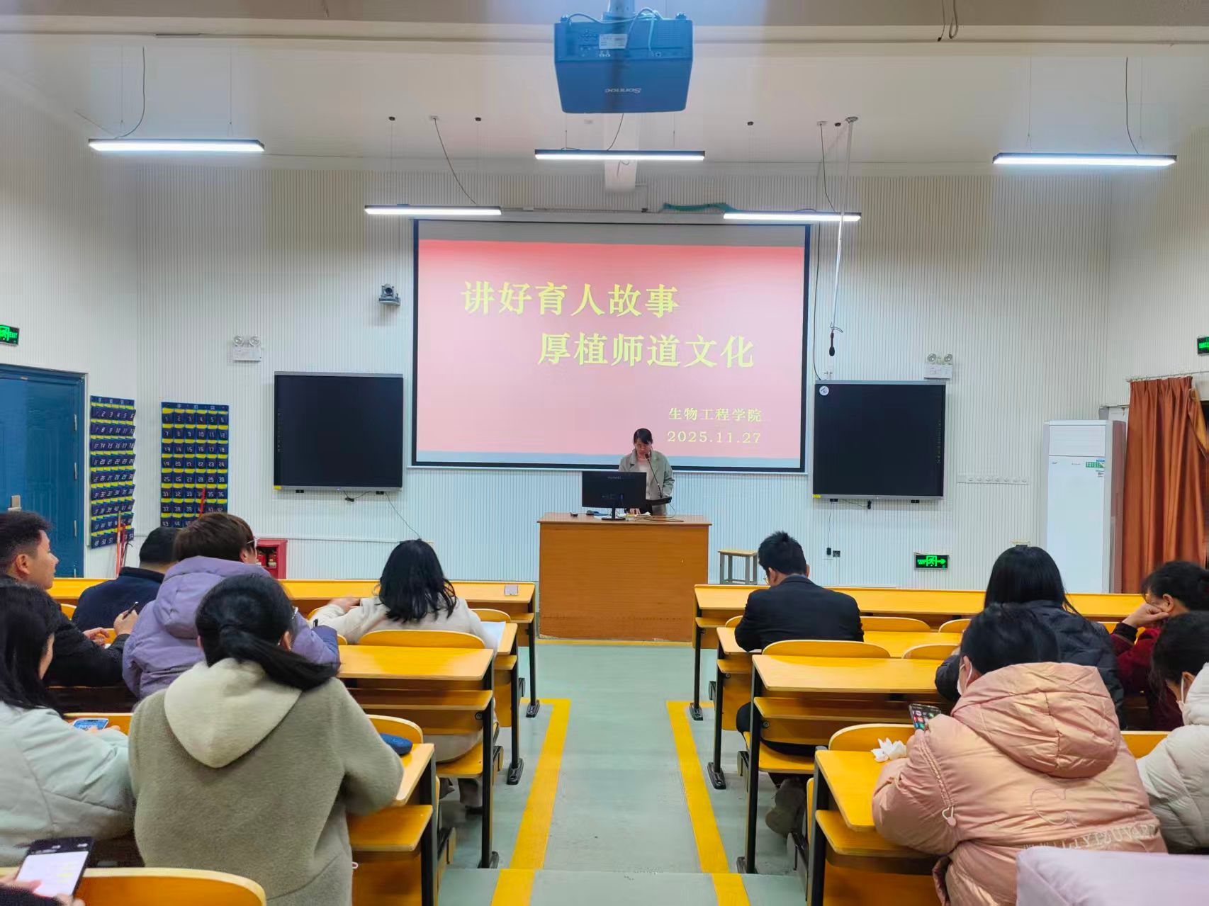 为深入贯彻立德树人根本任务,大力弘扬教育家精神,强化教师育人使命担当,生物工程学院于11月27日在第三多媒体教室举办“讲好育人故事,厚植师道文化”主题学习活动。生物工程学院全体专兼职教师共同参与,在温情讲述与深度交流中传承师道薪火。