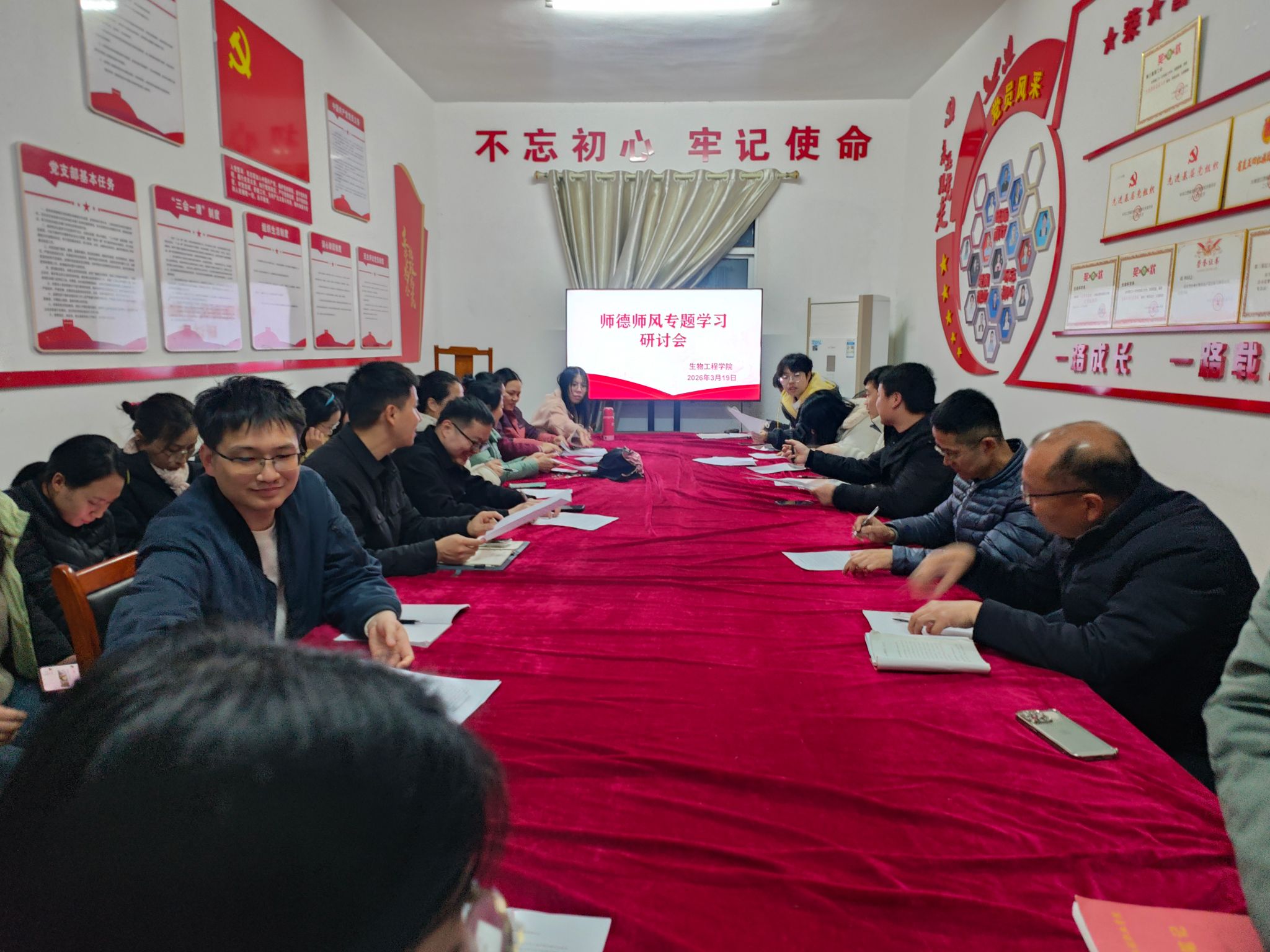 为深入贯彻落实新时代教师职业行为规范,切实强化教师职业道德修养,扎实筑牢育人根基,3月23日,生物工程学院组织全体专兼职教师在310会议室开展师德师风专题活动。