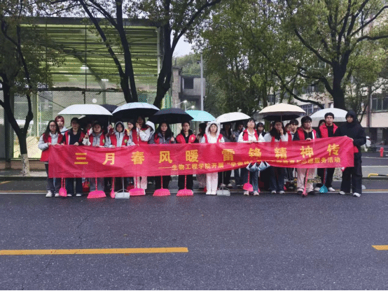 三月春风润校园,雷锋精神永相传。为践行“守护健康生活,我为同学办实事”宗旨,扎实推进三月学雷锋系列活动,生物工程学院于3月24日开展“三月春风暖,雷锋精神传”主题校园公共区域清扫志愿服务,以青春行动美化校园,传承志愿精神。