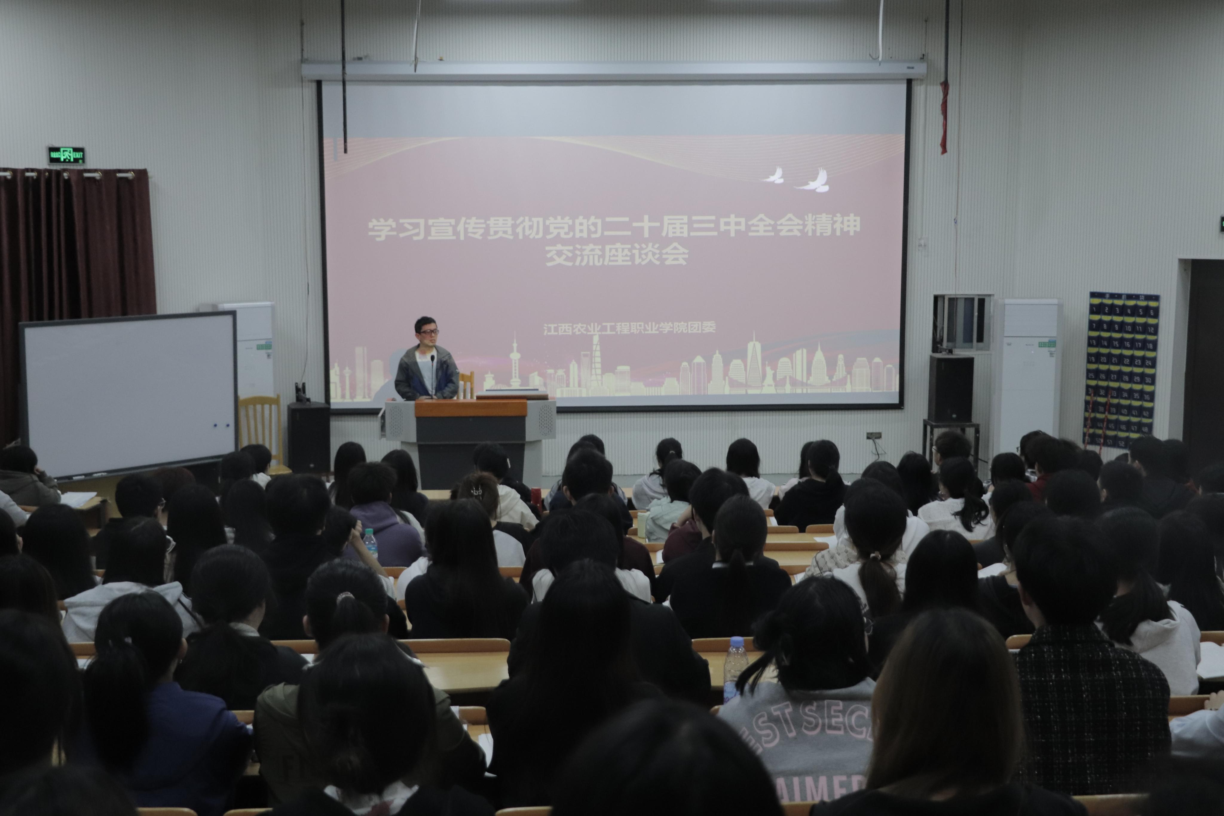 为深入学习贯彻党的二十届三中全会精神,10月28日江西农业工程职业学院团委在多功能报告厅成功举办了学习贯彻党的二十届三中全会精神交流座谈会。团委、各团总支和全校师生代表共150余人参加。