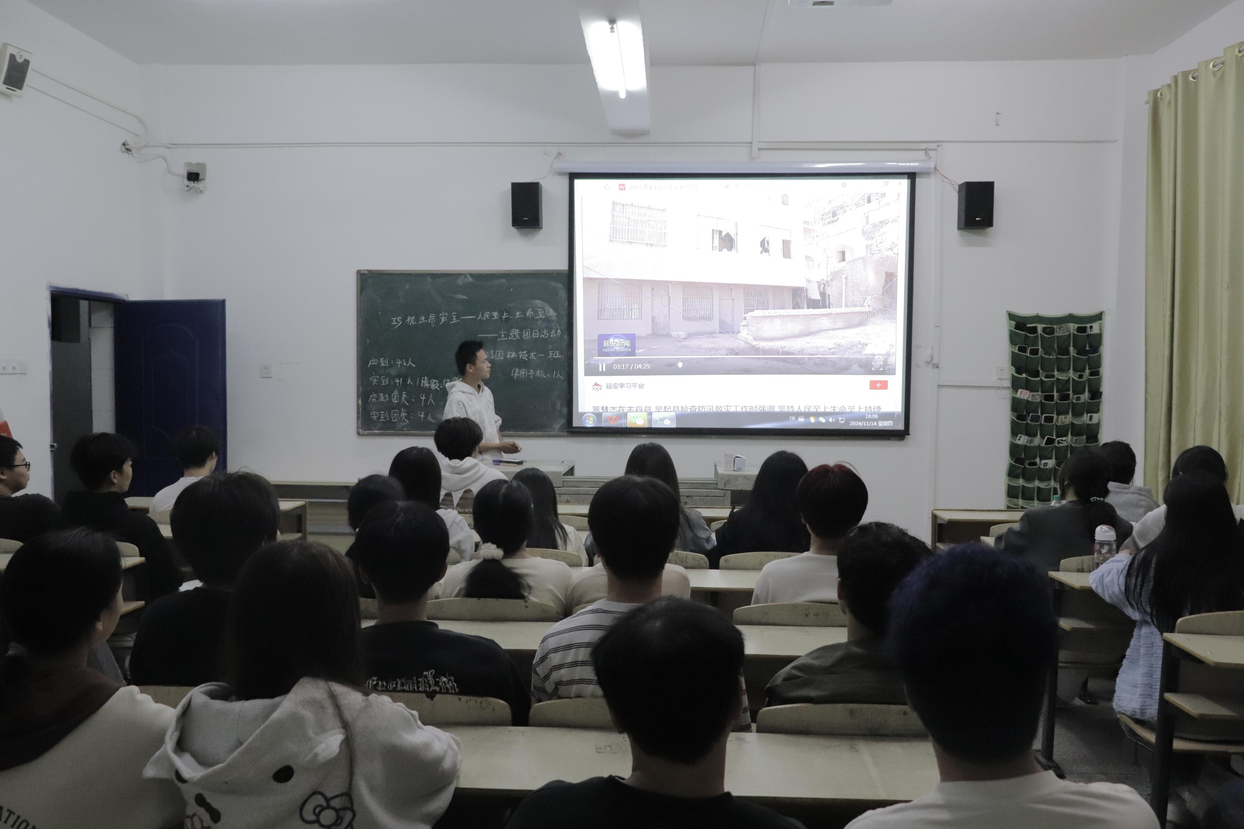活动伊始,各班团支部书记带领大家一同观看了习近平总书记关于安全生产的重要指示精神视频,让大家更深入、系统地理解“人民至上 生命至上”的内涵。其次,各班团支部书记通过PPT讲解的方式,带大家深入了解各类灾害的特点和应对措施,加深了大家对安全知识的了解。最后,大家以小组为单位开展了安全知识问答环节,问答内容涵盖了交通安全、消防安全、用电安全等多个方面,题目设计既贴近生活又富有教育意义。同学们在活动中积极思考,踊跃回答,现场气氛活跃,有效增强了大家的安全意识,一定程度上提高了大家的安全防范能力。