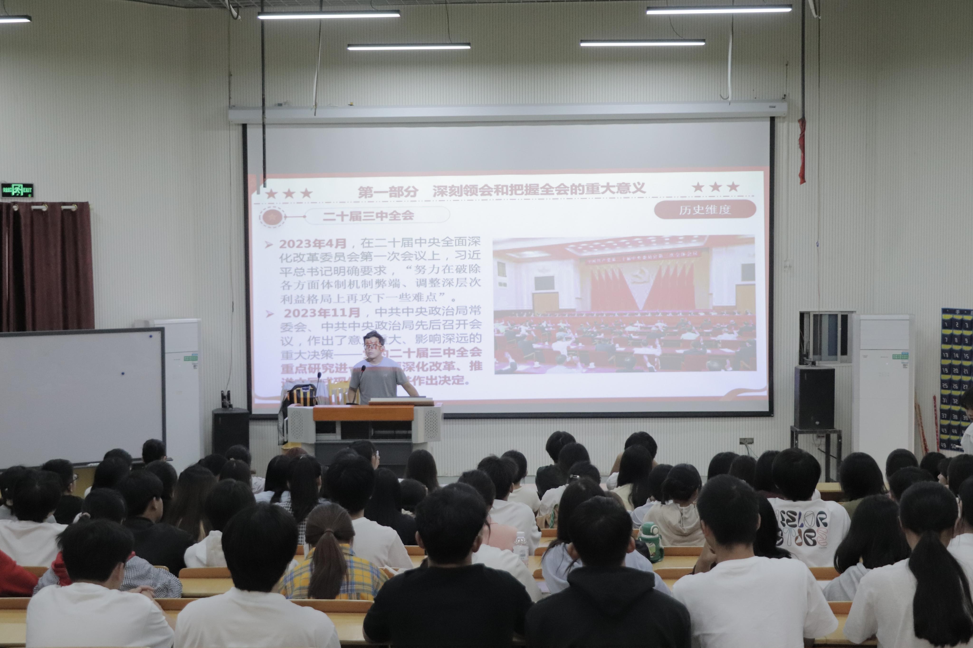 为深入贯彻学习党的二十届三中全会精神,江西农业工程职业学院团委于2024年10月10日下午在第一多媒体教室举办了专题学习宣讲会,此次宣讲会由团委书记毛姝同志主持,团委青年讲师团成员李培根同志宣讲,各团支部书记、学生会团干共140余人参加。