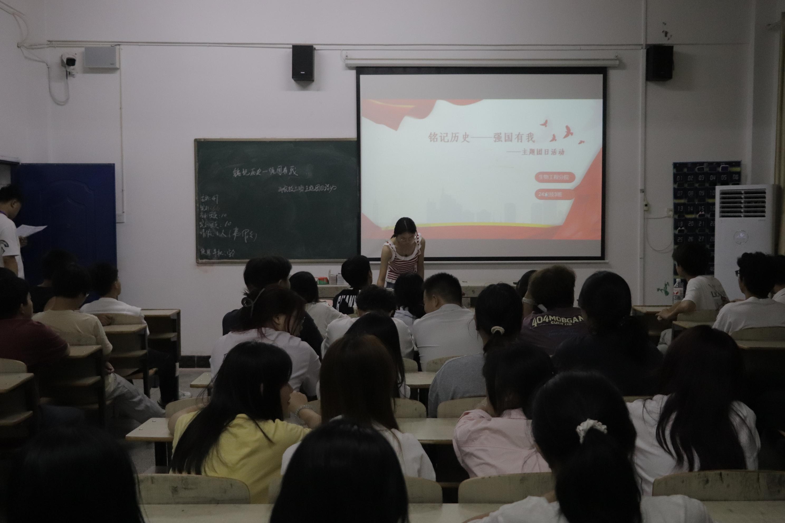 活动中,全体团员青年集中观看红色主题纪录片,共同回顾波澜壮阔、艰苦卓绝的峥嵘岁月,深切感悟革命先辈在争取国家独立和民族解放进程中展现的崇高精神与坚定信念。随后,各班级团支部书记主持开展主题历史故事分享会。团员们依托翔实史料,深情讲述英雄烈士的光辉事迹,在重温历史进程中汲取砥砺奋进的精神力量。活动尾声,各团支部书记勉励全体团员以史为鉴、面向未来,深刻把握“强国有我”的时代内涵与实践要求,自觉肩负新时代中国青年的责任使命。