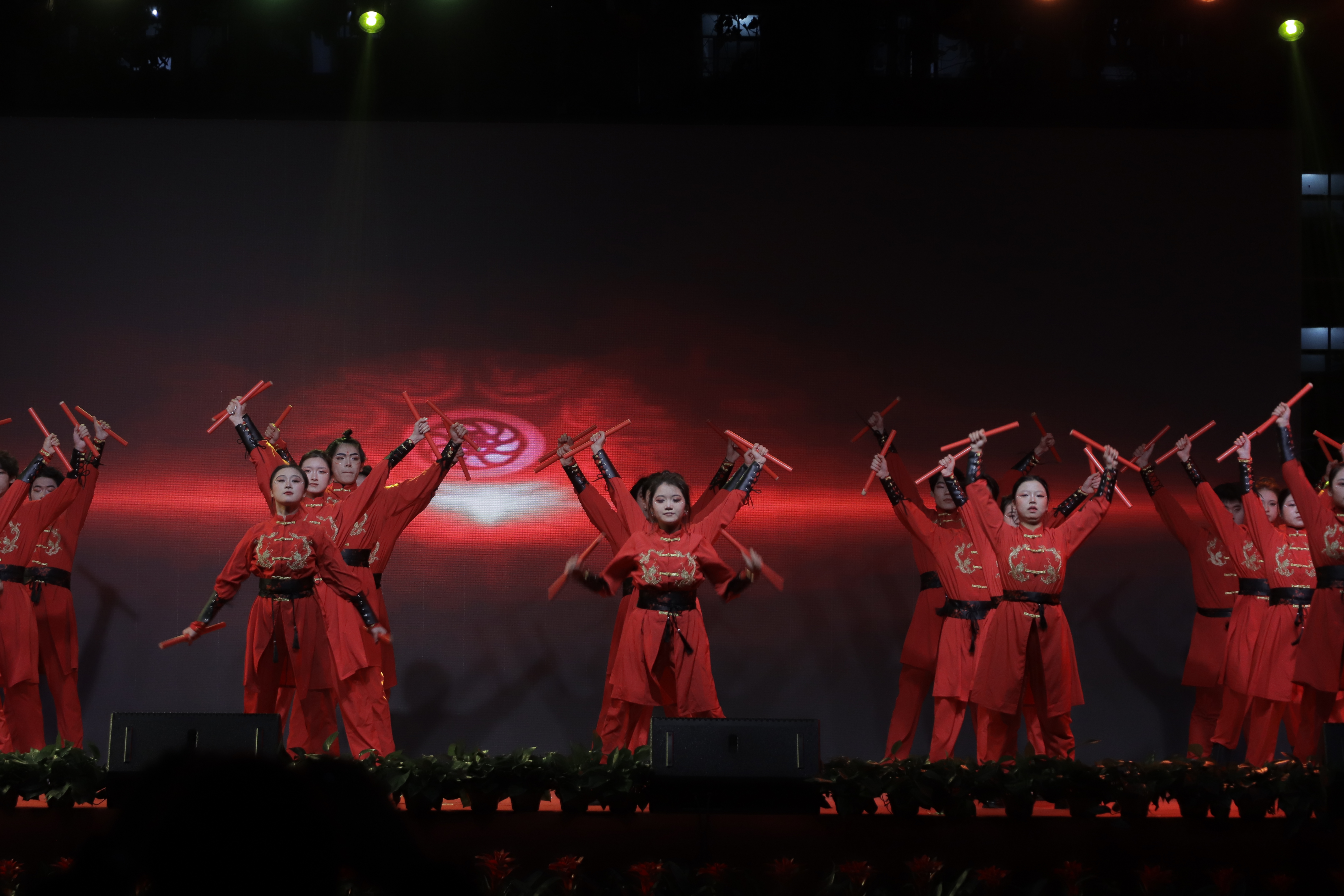 晚会正式拉开帷幕。开场乐队演奏瞬间点燃了现场氛围,动感的旋律与铿锵的节奏勾勒出青春的蓬勃朝气;走秀、对唱、合唱、武术等多元节目轮番上演,参演者以精湛的表现展现了我校学子的综合素质,现场洋溢着欢乐热烈的气氛。其中,情景剧与舞蹈融合的《清风拂橙红》以新颖的艺术形式讲述了动人的故事,在光影交错间传递出扶贫助农的艰辛;《薪火继五四》通过深情演绎致敬五四先驱,让五四精神在校园中薪火相传;《觉醒》以铿锵有力的朗诵传递青年理想信念,彰显了新时代大学生的责任与担当。精彩的表演多次将现场气氛推向高潮,革命精神、传统文化与社会主义核心价值观在舞台上有机融合,深深触动了在场师生。