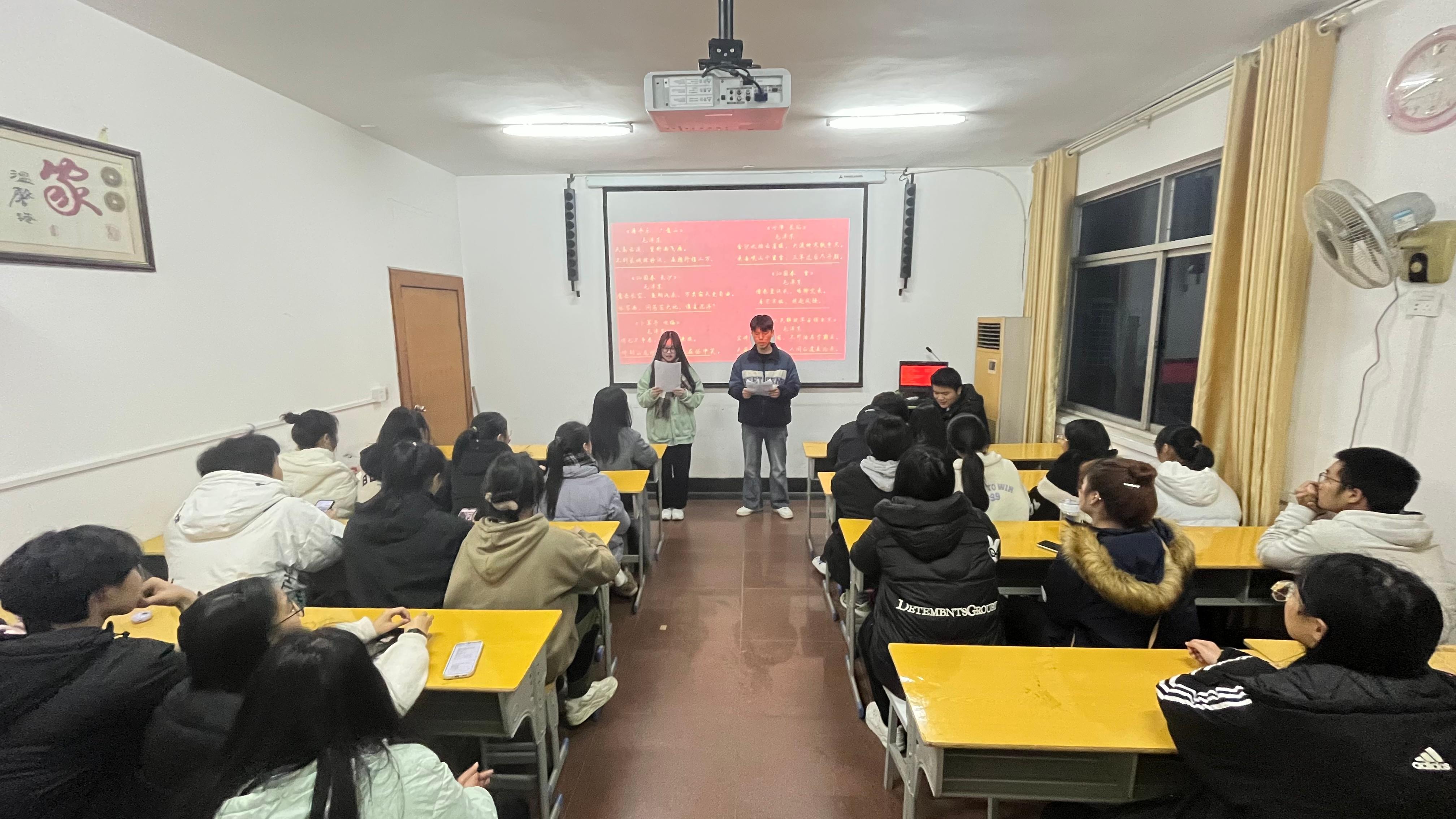 为纪念毛泽东130周年诞辰,让青年学习红色文化,传承红色基因。2023年12月15日,我校新穗文学社组织社员在活动中心开展“诵读伟人经典 感悟红色情怀”诗词朗诵活动。