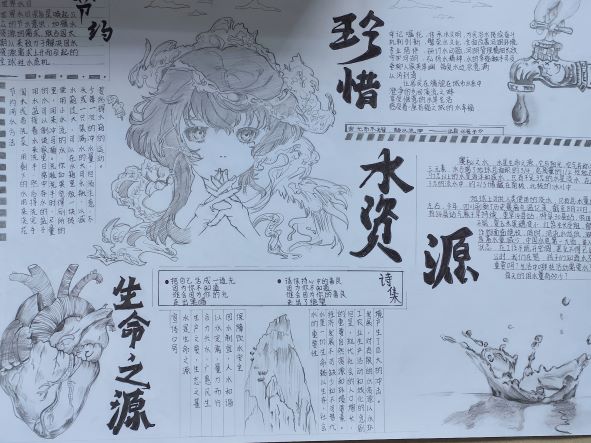 活动中,同学们紧紧围绕“世界水日”主题,以他们特有的视角画出了对节约用水的理解以及节约用水的重要性。作品结合实际,突出重点,用图文并茂的方式绘制出丰富多彩的手抄报。