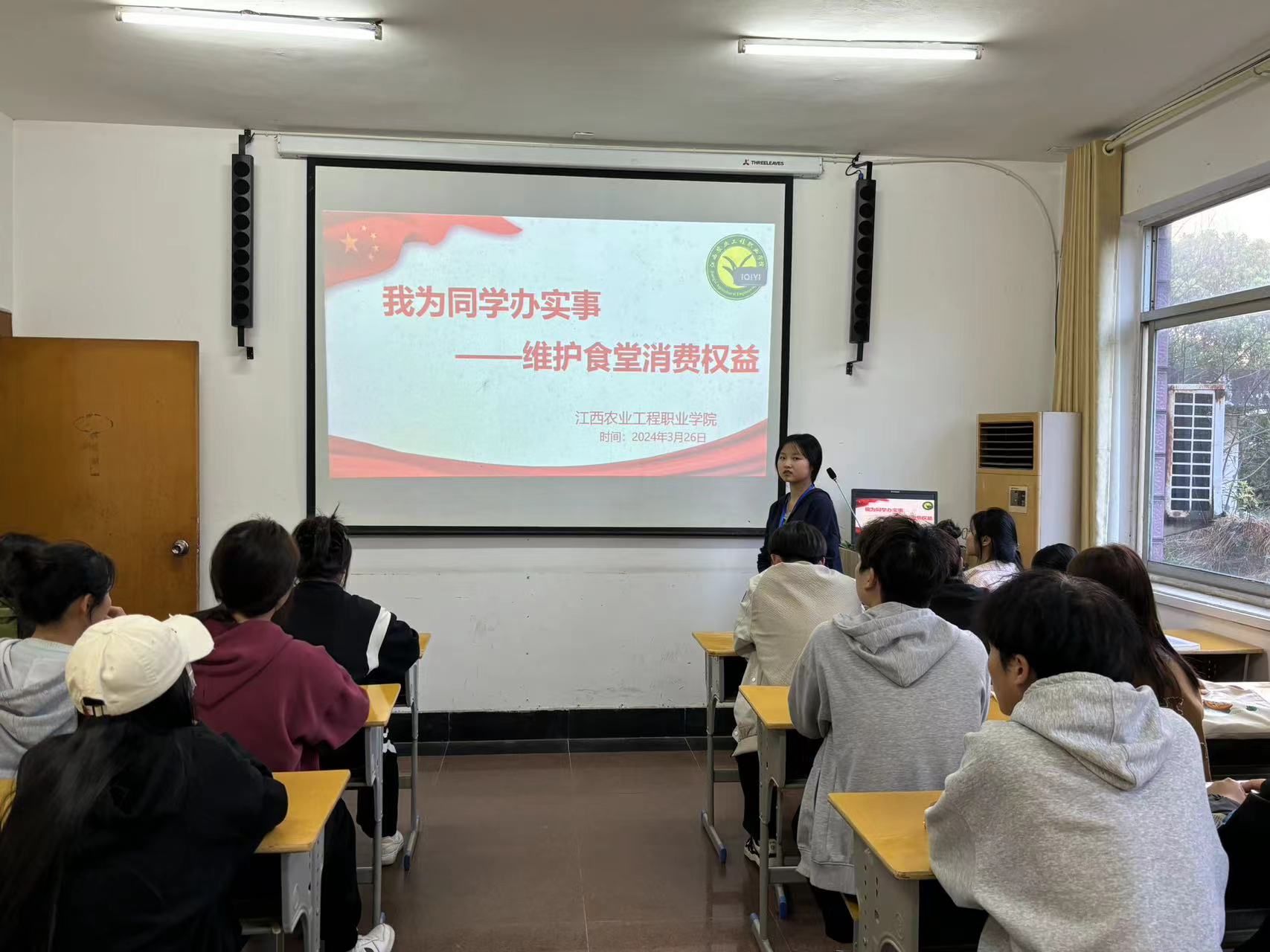 会上,校学生会工作人员首先对食堂、超市维权途径及其管理制度等相关内容进行了详细地讲解,并对同学们所关注的食品安全和食堂、超市维权等问题进行解答。随后,校学生会工作人员进行了现场的问卷调查,并将所收集到的问题给予提供相应的解决途径。最后,在场同学积极建言献策,校学生会工作人员在会后将同学们的建议反馈给学校后勤相关部门,积极配合学校帮助解决同学们在校园生活中遇到的消费问题。