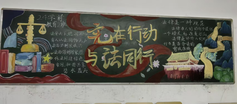 在本次活动中,各班紧紧围绕主题精心设计,用彩色的粉笔勾画出一幅幅排版美观、内容积极向上、色彩鲜明的黑板报,出色地完成了此次活动。通过黑板报的形式,既提高了同学们的艺术创造力,又让宪法的知识深入人心。经过评比,最终结果如下:大专组一等奖:24学前4班、24学前2班、24市营班;大专组二等奖:24会计1班、24学前3班、24物联网2班、24农装班;大专组三等奖:24模具1班、24会计2班、24机电2班、24计网2班、24物联网1班。中专组一等奖:24五年数媒艺术班;中专组二等奖:24五年托育2班;中专组三等奖:24五年托育1班。