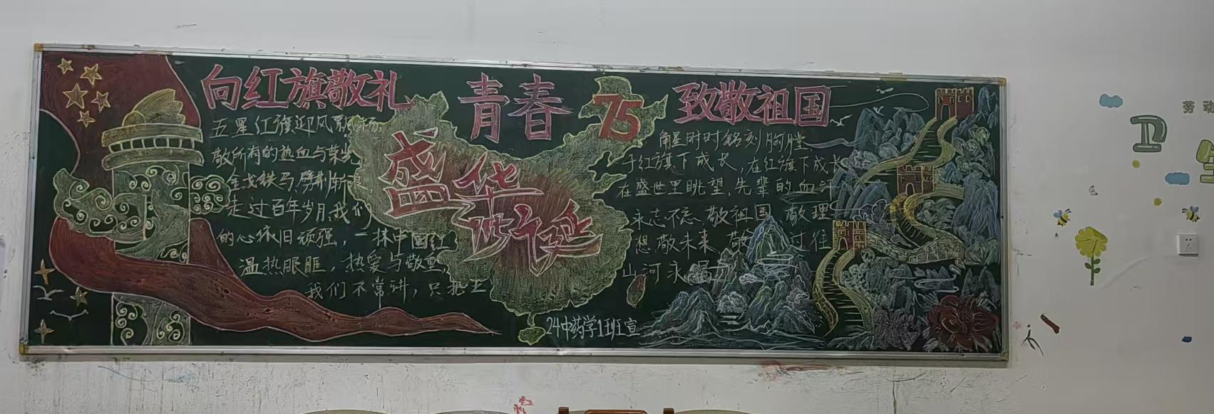 为庆祝中华人民共和国成立75周年,致敬伟大祖国,弘扬爱国主义精神,学院团委于10月组织开展了以“向国旗敬礼-青春致敬祖国”为主题的黑板报评比活动。