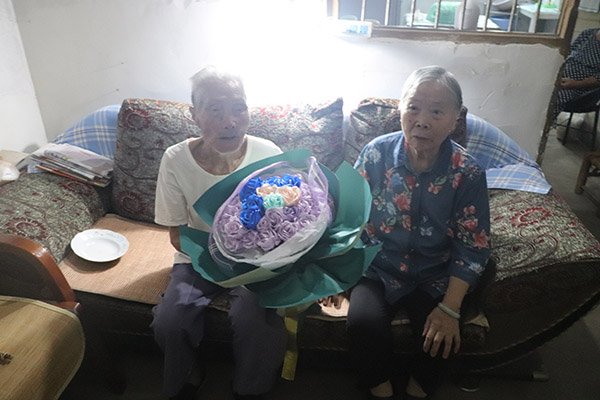 郝老师和6名志愿者献给陈老师学生做的手工花,并仔细询问了陈老师的身体状况,关心和了解他的生活情况,细心听取他的意见与建议。
