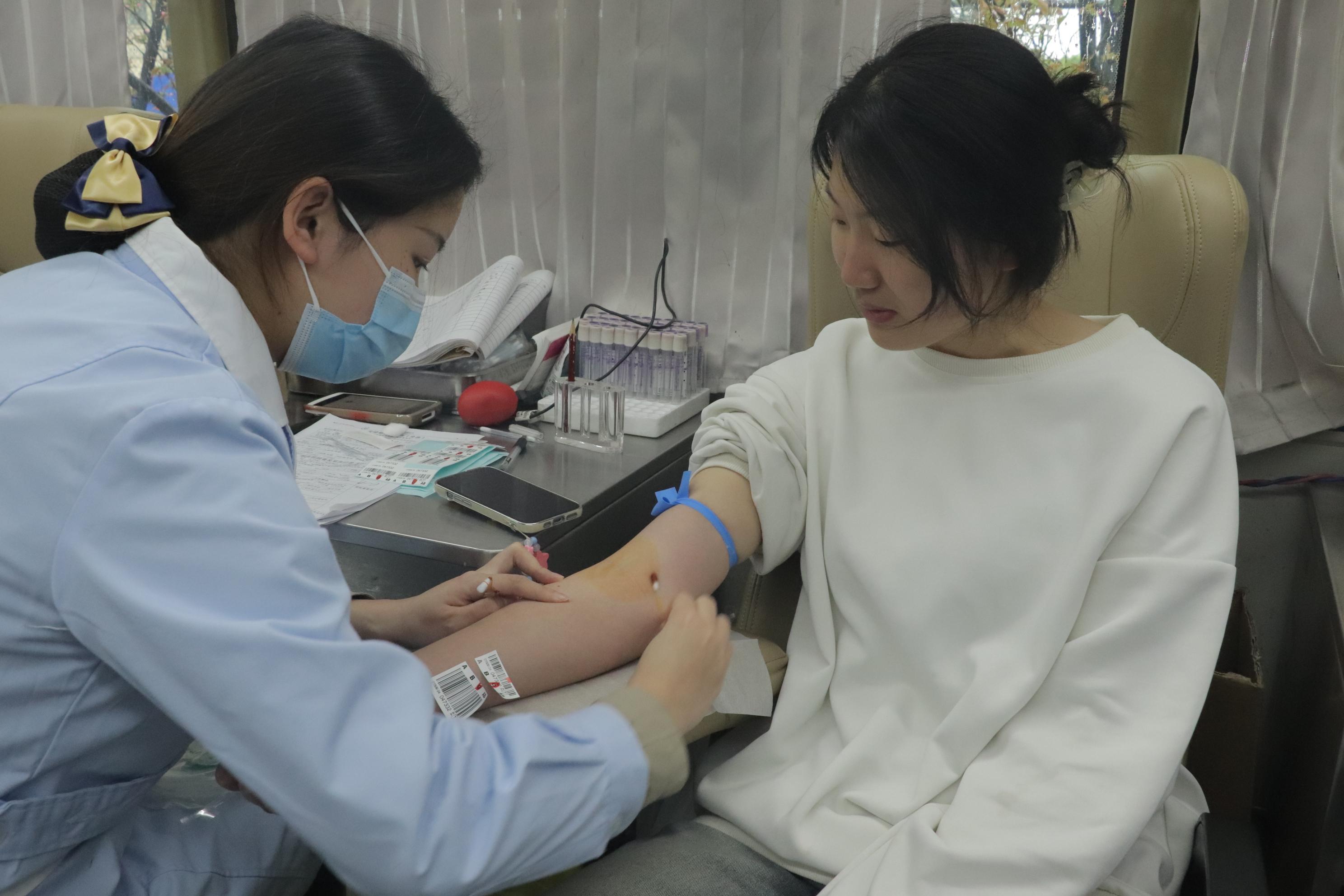 在活动现场,献血站的工作人员与热心的志愿者们分工协作并有序指挥,同学们井然有序地排列成队,依次顺利完成登记、体检、化验和献血等各个环节。在登记准备工作完成后,同学们有序进入献血车,献血车内装备齐全、环境卫生,为同学们提供了舒适和安全的献血体验。献血过程中,志愿者时刻关注着献血者的状态,献血结束后贴心地递上一杯温暖的糖水,并为献血者送上献血证和精美礼品。专业医护人员细致入微地对每位同学们进行献血操作,并耐心回答他们的问题和疑虑。大家相互鼓励,勇敢地“撸袖前行”,共同见证着一份份满载爱心的血液被缓缓采集。