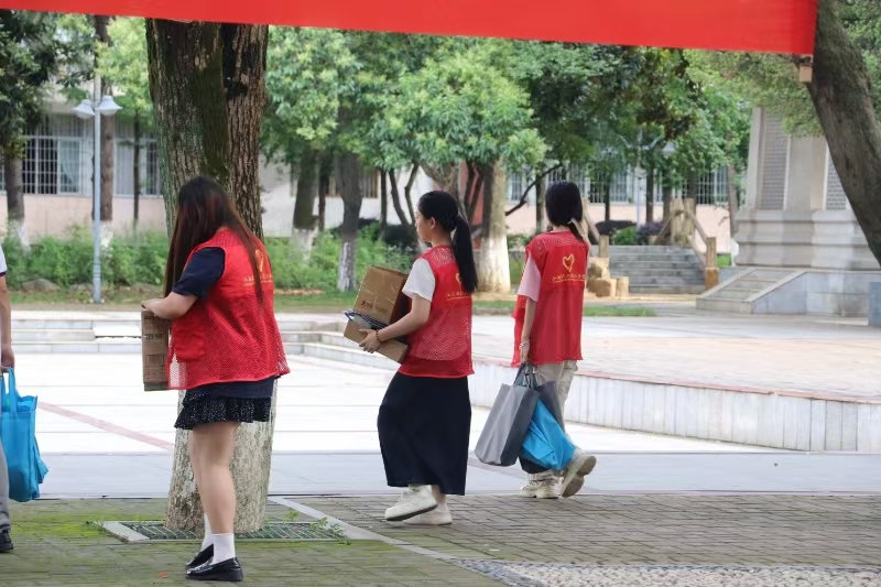 考试前夕,志愿者们准时到达考点,他们协助老师们细致完成考试安检场地布置,从设备调试到流程规划,每一个环节都反复确认,力求做到万无一失。考试当日,志愿者们化身“暖心守护者”,在物品存放处与考场入口筑起服务线。存包区严格落实“双人核对”机制,志愿者们为每位考生的随身物品贴上专属编码标签,通过人工登记,实现物品存取零差错;考场入口处,志愿者高举醒目提示牌,逐一提醒考生“请检查准考证、身份证、学生证”“携带听力耳机、备用电池”。面对神色焦虑的考生,他们用“别慌,我们全程护航”的暖心话语,化解紧张情绪,传递青春温度。