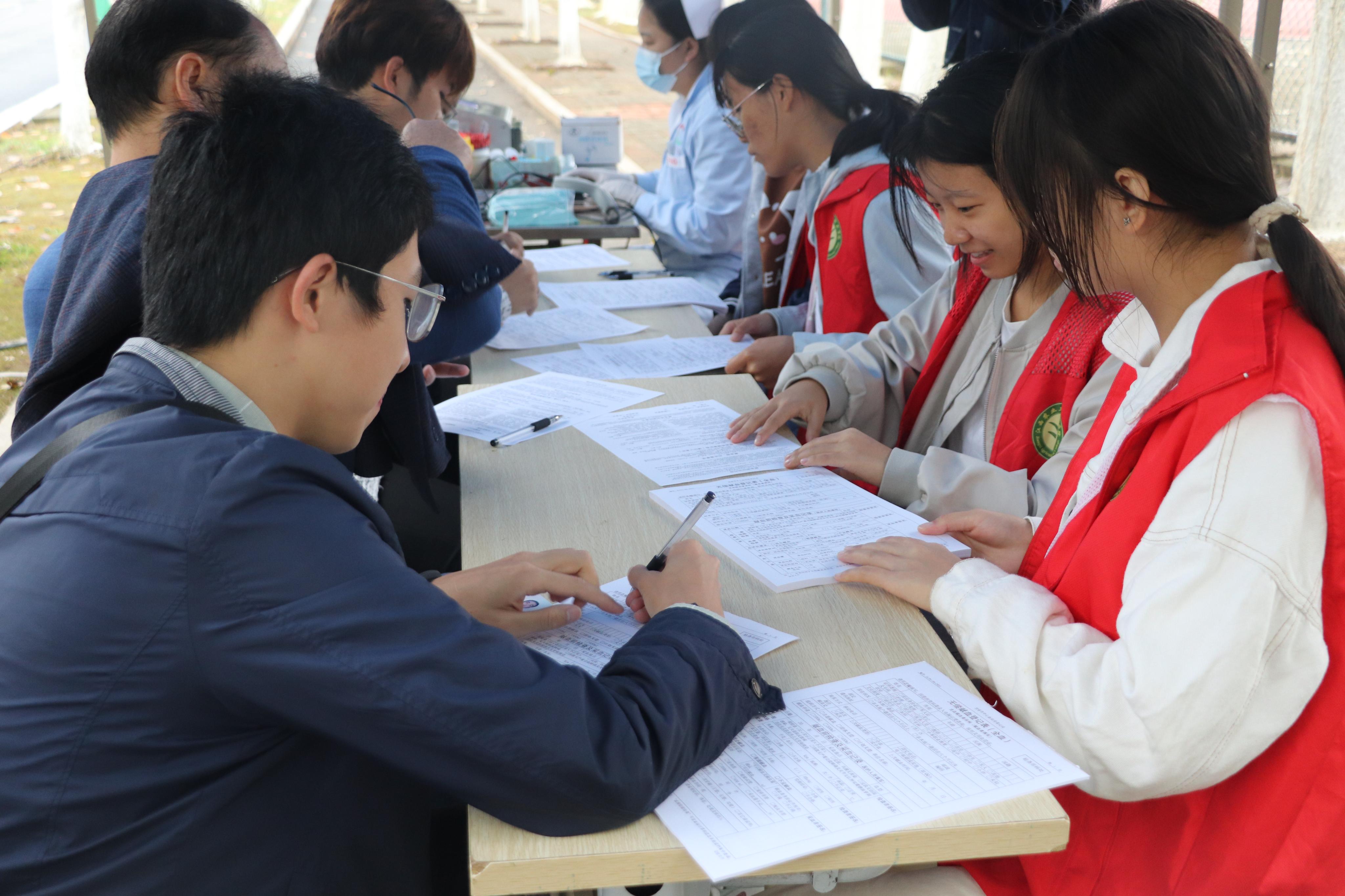 在活动现场,同学们面带微笑,纷纷踊跃报名,献出自己的一份爱心。大部分同学们都是初次尝试的“新鲜血液”,他们在医务人员的认真叮嘱与志愿者的耐心帮助下,有序完成了登记填表、血压测量、化验采血等流程,为社会贡献出自己的一份力量。鲜红的血液随着针管的流出,犹如炙热的中国红诠释着当代青年人的担当与奉献。最后,医务人员们还为参与献血的同学们准备了食物补给、礼物和献血卡,活动有序且顺利的进行着。