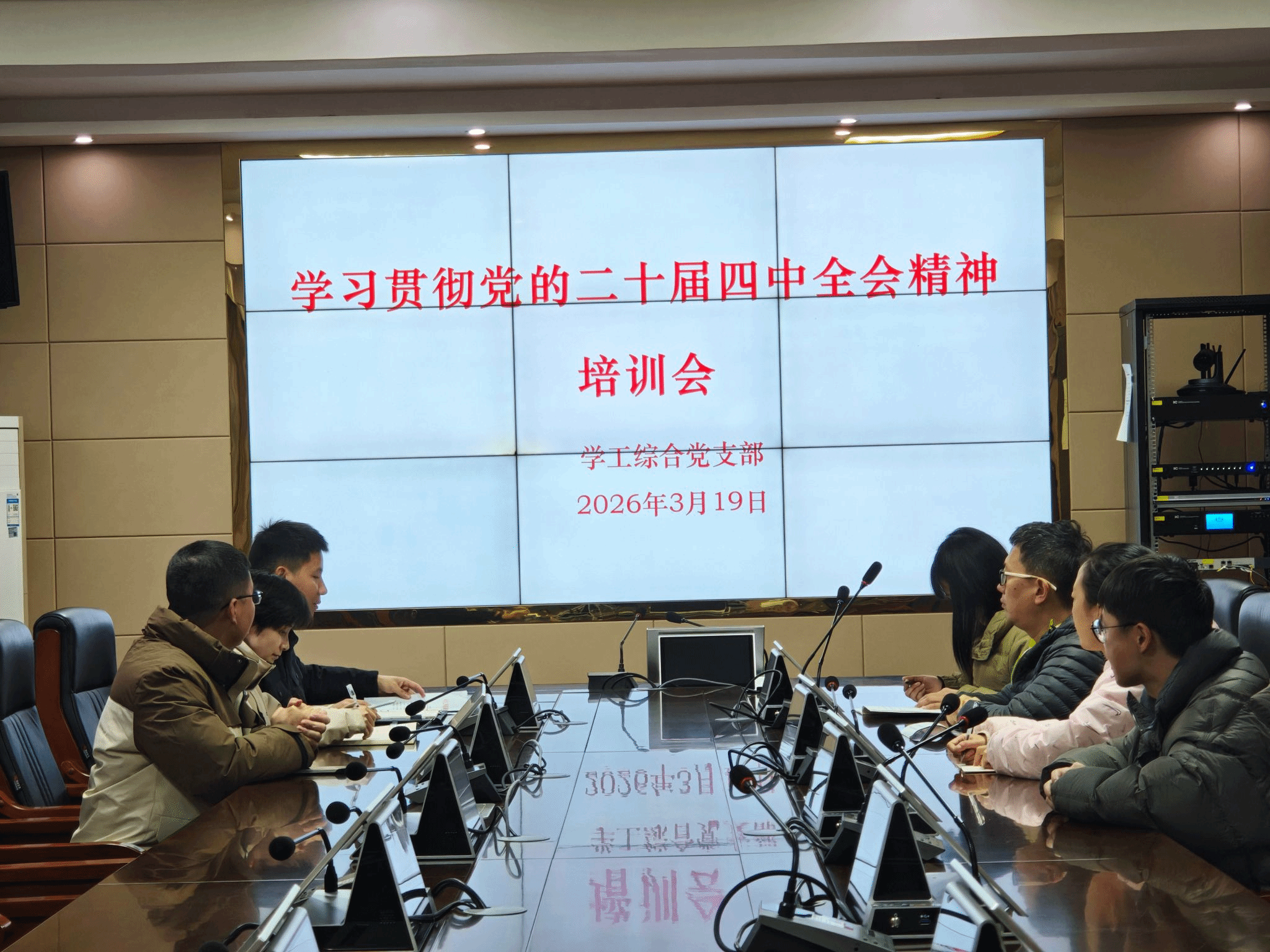 为深入学习贯彻党的二十届四中全会精神,切实把党支部党员的思想和行动统一到党中央决策部署上来,按照学院党委《关于认真做好学习贯彻党的二十届四中全会精神培训的通知》的统一部署,3月19日,学工综合党支部在409会议室组织开展集中培训会。