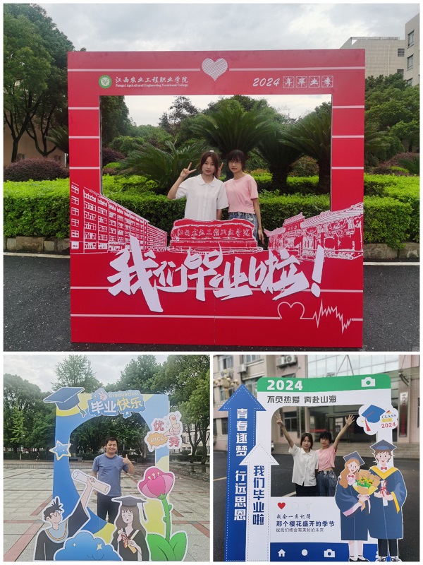 七月,是离别的季节,也是收获的季节。江西农业工程职业学院的毕业生们,带着对校园的依依不舍,迎来了人生新的旅程。为了让毕业生们留下美好的回忆,学校不但举行了2024届毕业生毕业典礼,还贴心地在校门口、行政楼前、书香园广场等地设置了毕业拍照相框,供毕业生们拍照留念。