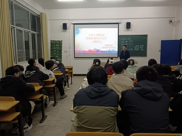 为贯彻落实健康中国战略,进一步推动无烟校园建设,营造健康、文明的学习生活环境,学院于2024年11月24日晚在全校范围内召开了“共建无烟校园”禁烟控烟知识宣传主题班会。本次活动由学工处统筹组织,各班积极响应参与,全面普及禁烟控烟知识,倡导健康生活理念。