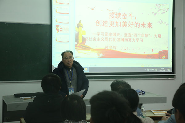 1月5日下午,学院党委委员、纪委书记钟景辉来到信息工程学院,走上思政课讲台,以《接续奋斗,创造更加美好的未来》和《学习十九届五中全会精神 为实现社会主义现代化强国努力学习》为主题,分别给20软件技术2班和20计算机应用技术1班的同学们上了一堂生动的思想政治课。