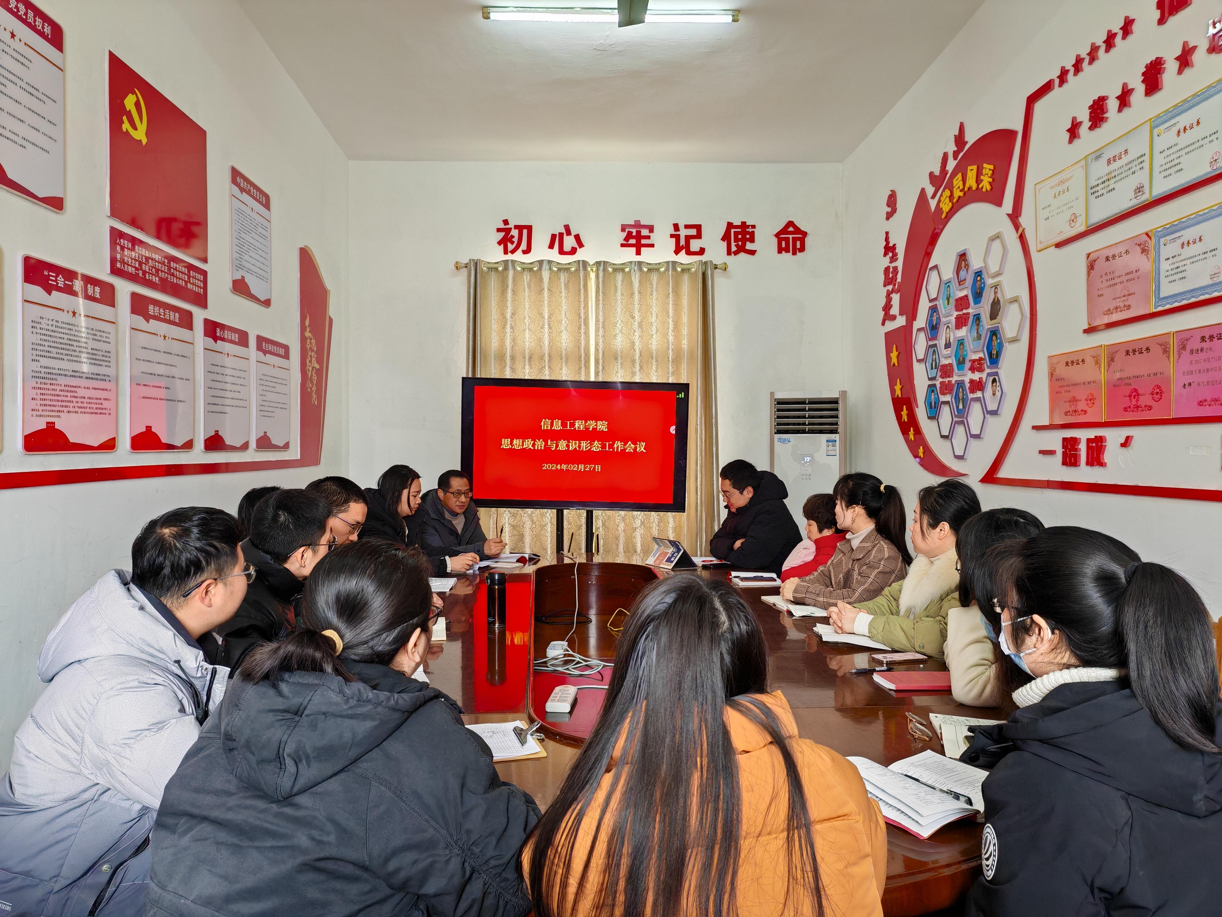 2月27日,信息工程学院在教师楼410会议室召开了2023-2024学年春季学期思想政治与意识形态工作会议,分院全体教职工参加。